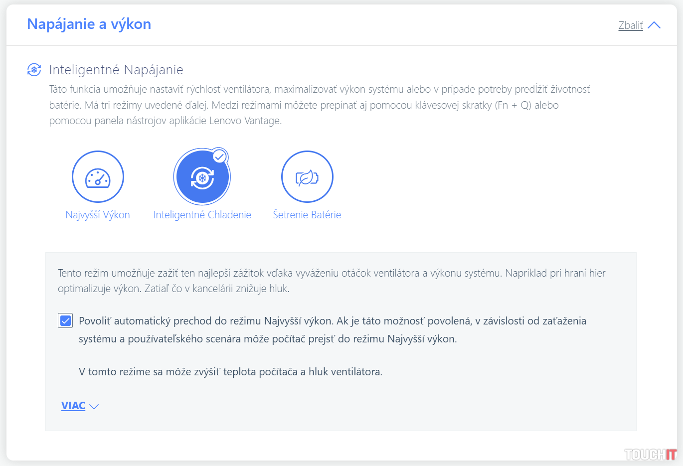 Pomyselnou bodkou k webovej kamere je podpora infračerveného rozpoznávania tváre a notebook vás na základe toho prihlási do systému. Výrobca napojil túto hardvérovú súčasť aj na svoje rozšírenie cez Lenovo Vantage, takže sa dá nastaviť, aby sa systém uzamkol akonáhle sa od počítača vzdialite. Komu by tento spôsob nevyhovoval, je možné ho cez spomínaný nástroj vypnúť.