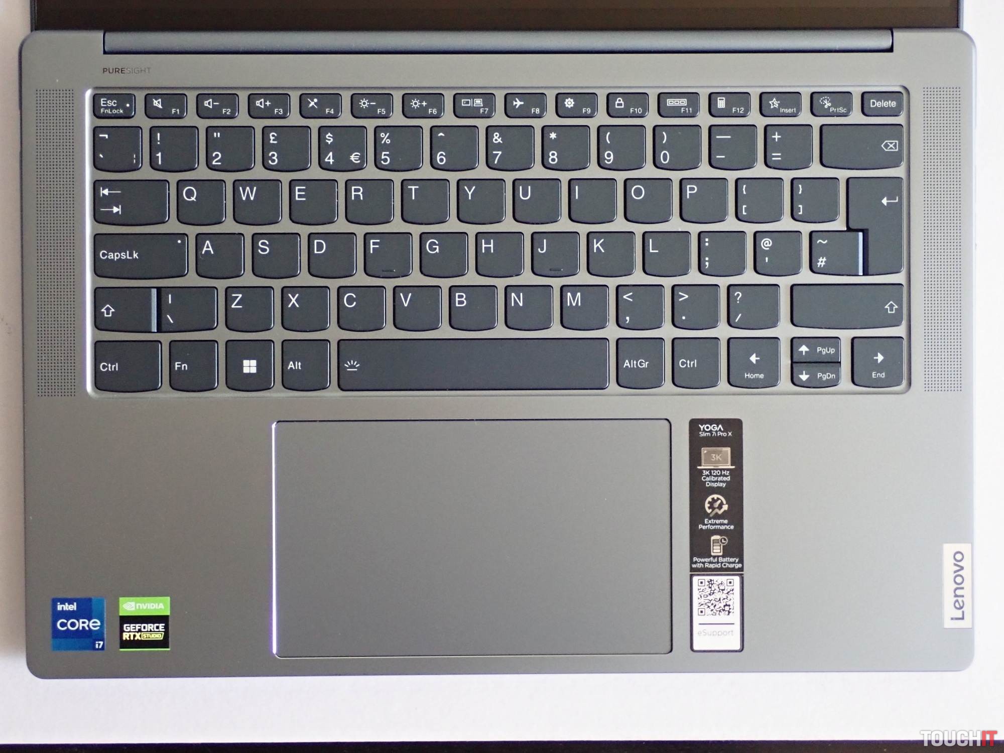 Dá sa povedať, že je štandardom podsvietená klávesnica s 2 stupňami intenzity bieleho svetla a navyše je doplnená o funkciu automatického podsvietenia na základe okolitých svetelných podmienok. Dobre sa na nej píše a je to klávesnica, ktorú poznáte z iných modelov značky Yoga a tiež patrí medzi tie tichšie.