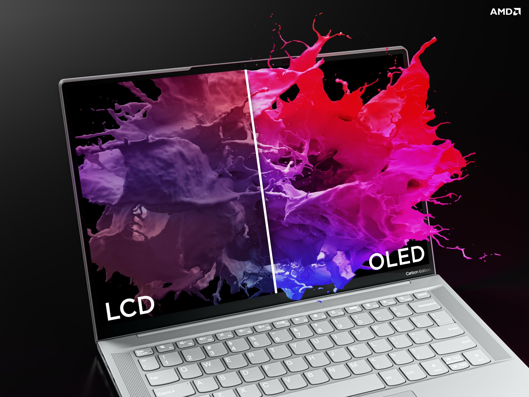 14-palcový QHD+ displej notebooku je vybavený OLED panelom od Samsung Display s optimalizáciou pre tenké rámiky zo všetkých štyroch strán. Podporuje okrem toho Dolby Vision a VESA DisplayHDR s certifikáciou TrueBlack 500 pre lepšiu reprodukciu kvality videa vo formáte zobrazenia 16:10 s cieľom znížiť potrebu scrollovania v aplikáciách a s továrenskou kalibráciou na Delta E <2 kvôli 100 % DCI-P3 farebného gamutu. Displej má certifikáciu TÜV Eye Comfort pre ochranu zdravia očí pred modrým svetlom, dotyková verzia je chránená sklom Gorilla Glass a vo všetkých prípadoch ide o 90 Hz displej.