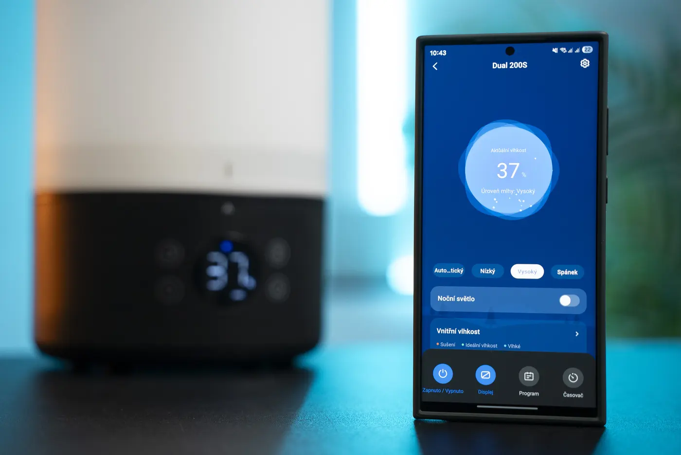 Zvlhčovač Dual 200S Pro dokáže na jedno naplnenie pracovať až 25 hodín, avšak táto doba je priamo závislá od zvoleného režimu a vlhkosti vzduchu. Pri maximálnom výkone je však spotreba vody až 220 ml/hod. Ako som už spomínal pri čističke Core 300S, tak aj v tomto prípade platí, že aj zvlhčovač Dual 200S Pro je veľmi tichý. Keďže pracuje v rozmedzí 26 – 28 dB, je ho možné používať v spálni alebo detskej izbe.