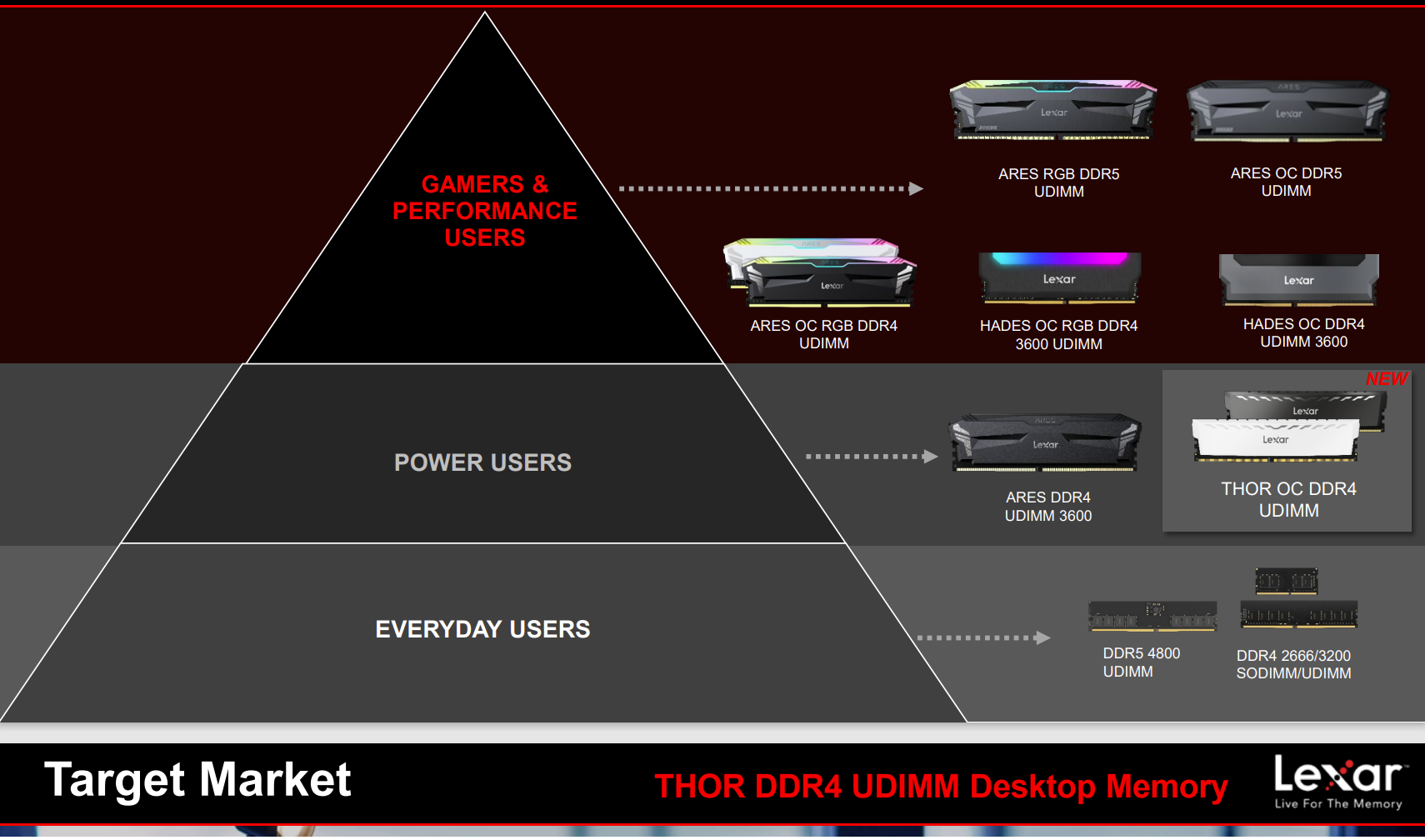 Výrobca má v ponuke niekoľko modelov operačných pamätí a segmentuje ich na 3 úrovne. Prvá je pre každodenných používateľov hľadajúcich operačnú pamäť DDR4 alebo DDR5. Na vrchole sú používatelia herných počítačov a medzi týmito dvomi segmentami sú používatelia hľadajúci vysoký kancelársky výkon, rýchly multitasking aplikácií a zároveň pripravenosť na príležitostné hranie hier.