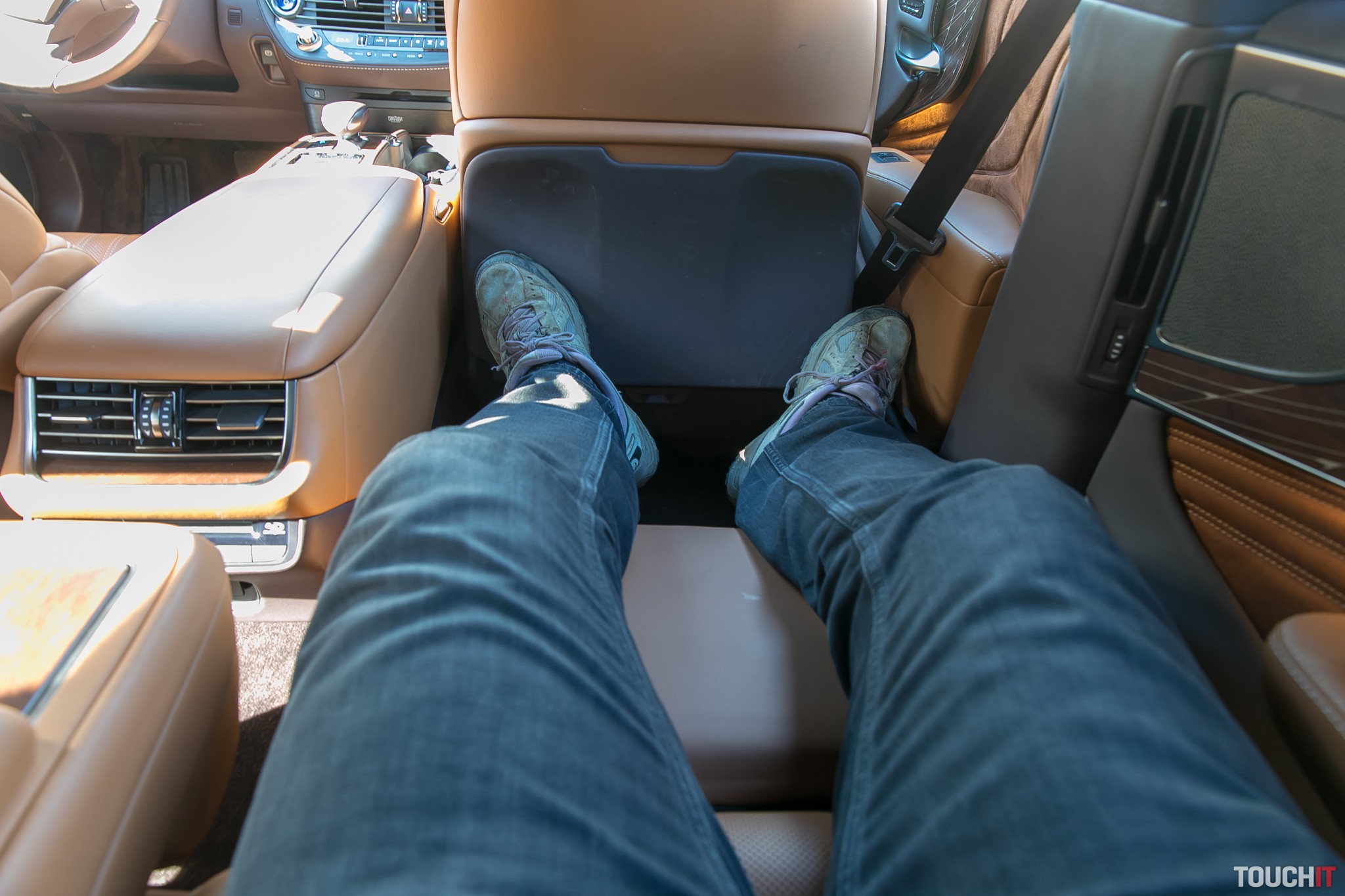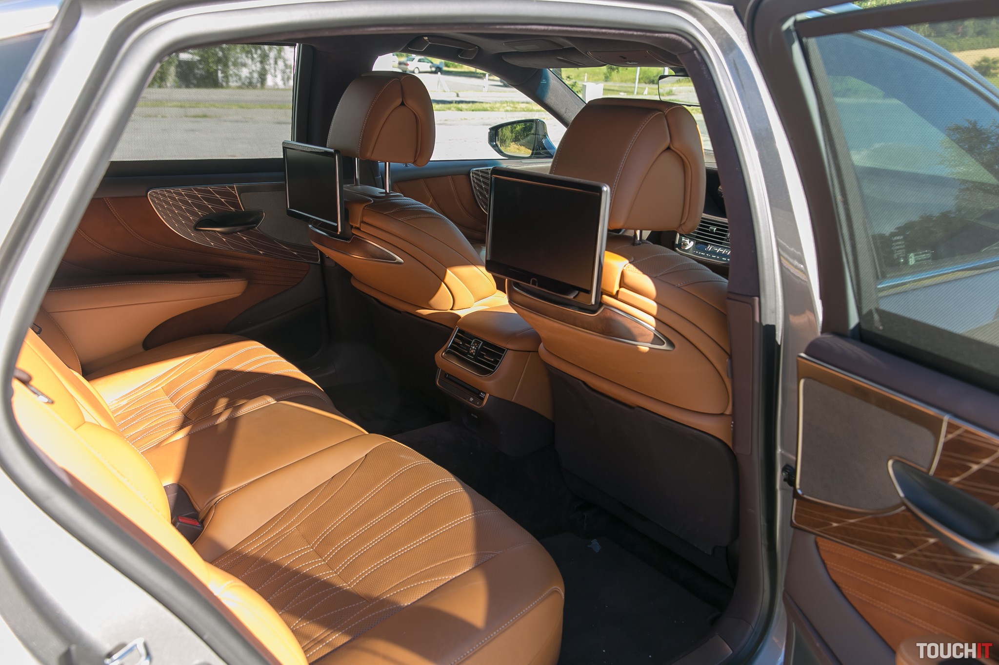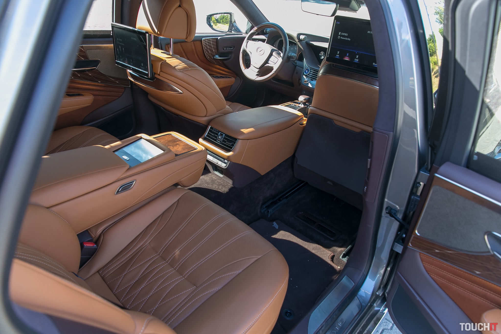 Vo vnútri nájdete jemnú kožu na sedadlách a prémiové materiály všade, kde sa len pozriete. Všetko je prešívané, vytvorené s tým, aby ste sa chceli povrchov dotýkať. Osobitné postavenie má osoba sediaca pravo vzadu – to je skutočný VIP, na ktorého sa toto auto sústreďuje. Ako VIP máte svoj displej s dotykovým ovládaním a ako prvé môžete nechať odsunúť predné sedadlo tak, aby ste mali dostatočne veľa miesta na vystretie nôh vrátane podložky pre nohy. Pred vami je displej, vybrať si môžete vlastné rozhlasové stanice, použiť DVD prehrávač alebo pripojiť vlastné video cez HDMI. V testovanej verzii nebol k dispozícii televízny tuner. Výborné je aj strešné okno a vzadu môžete aj elektronicky ovládať clony na oknách. V celkom zatvorenom stave nie je zvonku vidieť do priestoru, kde sedí VIP osoba. V tejto časti majú pasažieri aj možnosť pripojiť spotrebič s 230 V napájaním. Samozrejmosťou je vyhrievanie/ofukovanie sedačiek a tiež niekoľko typov špeciálnych japonských masáží.