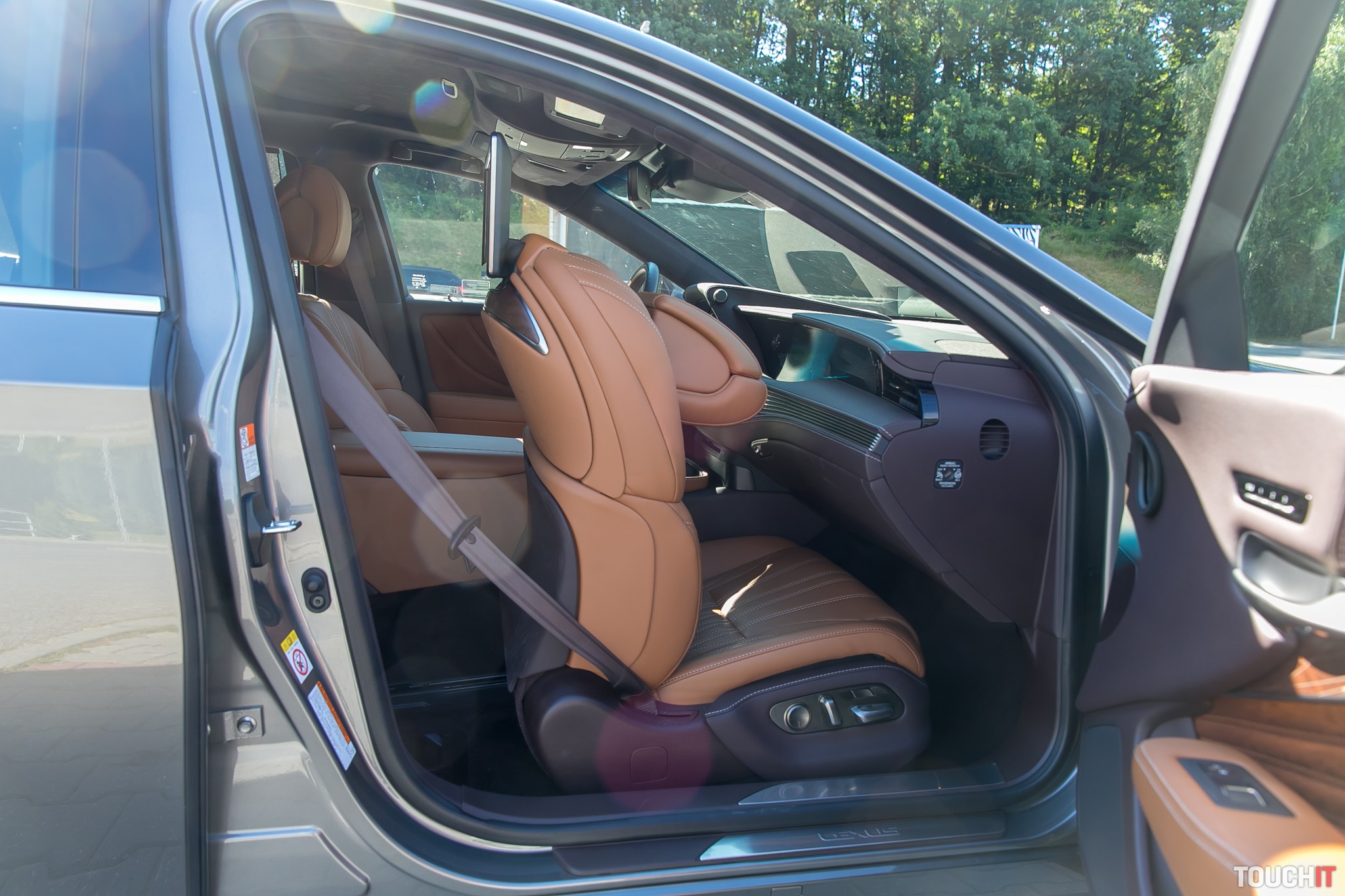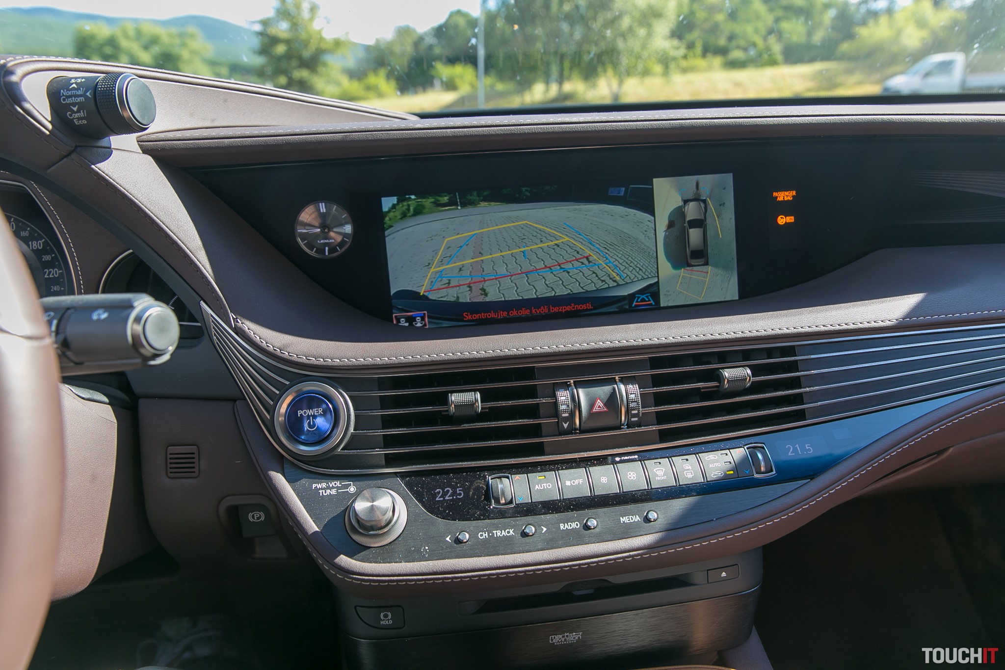 Vodič a spolujazdec tiež nie sú nejakí žobráci v tomto aute. Obaja majú mäkkú a pružnú kožu na sedačkách, môžu si zvoliť vyhrievanie a ofukovanie tela ako aj masáže. A treba povedať, že toto sú masáže, ktoré naozaj cítite. Nie akési neúčinné hladkanie len aby bolo. V strope nad každým cestujúcim je osvetlené zrkadlo a tiež reproduktor z audio systému Mark Levinson. Navyše k tomu pripočítajte kamerový systém s 360° pohľadom okolo auta.