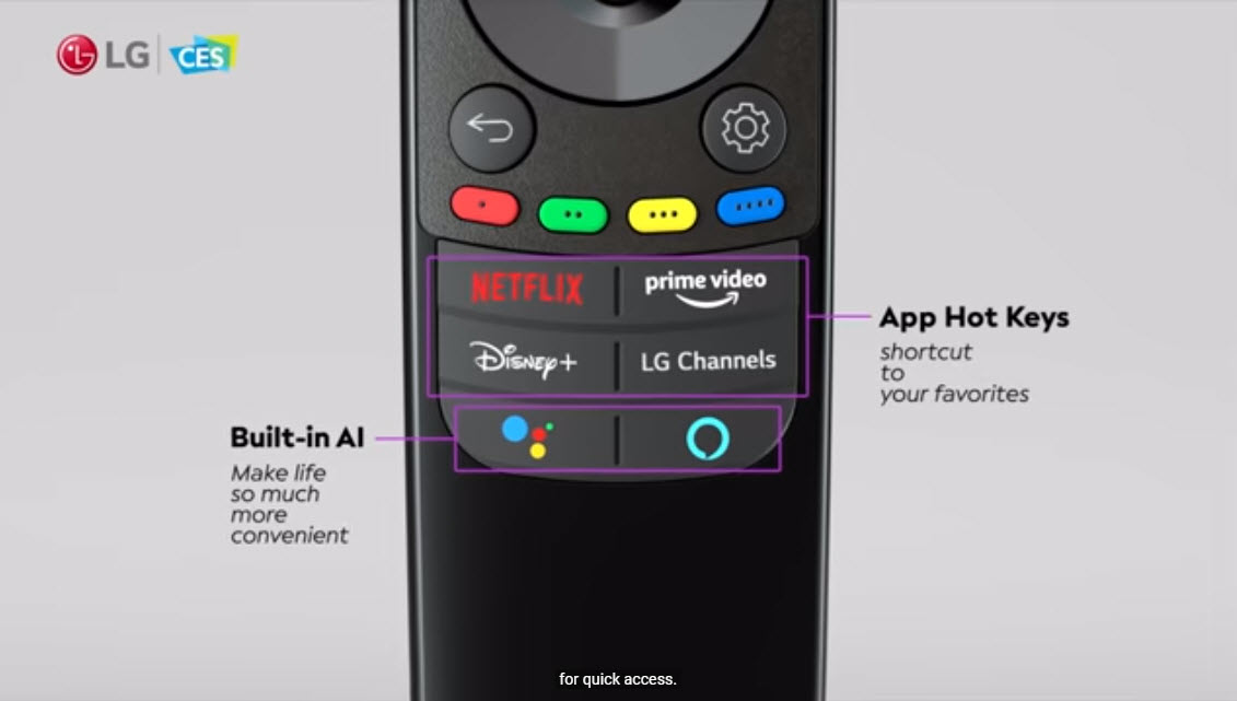 Zmenilo sa aj populárne diaľkové ovládanie Magic Remote. To sme mimochodom pri našom test chválili aj my. Verzia 2021 tohto ovládača má ergonomický tvar, tlačidlá sú viac intuitívne a výrobca doplnil aj špeciálne tlačidlo pre systém ThinQ AI. To je zatiaľ na Slovensku skôr nepoužiteľné. Niektoré modely majú diaľkové ovládanie vybavené aj NFC na jednoduché pripojenie mobilných zariadení. Týka sa to napr. prehrávania obsahu zo smartfónu na obrazovke televízora alebo opačne.