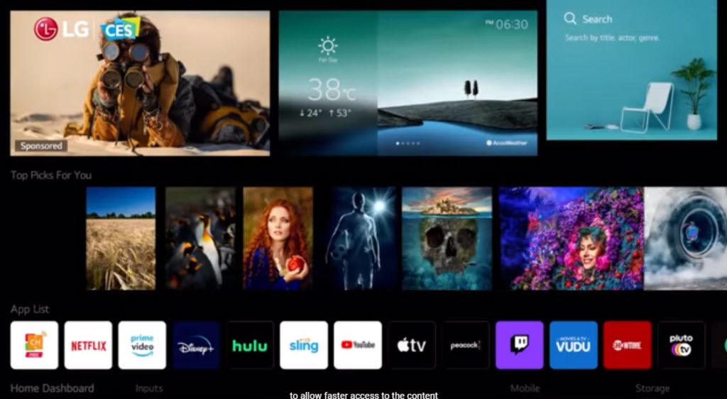 Domáca obrazovka WebOS bola v novom LG televízore kompletne prepracovaná, zo starej v podstate nezostalo nič. To celkom chválime, mali sme na to špeciálny test. Nový systém je moderne vyzerajúci a automaticky vám vyhľadáva pre vás zaujímavý obsah. Pozná vaše preferencie a tiež vie, aké prémiové služby máte predplatené a vyberá aj z nich.