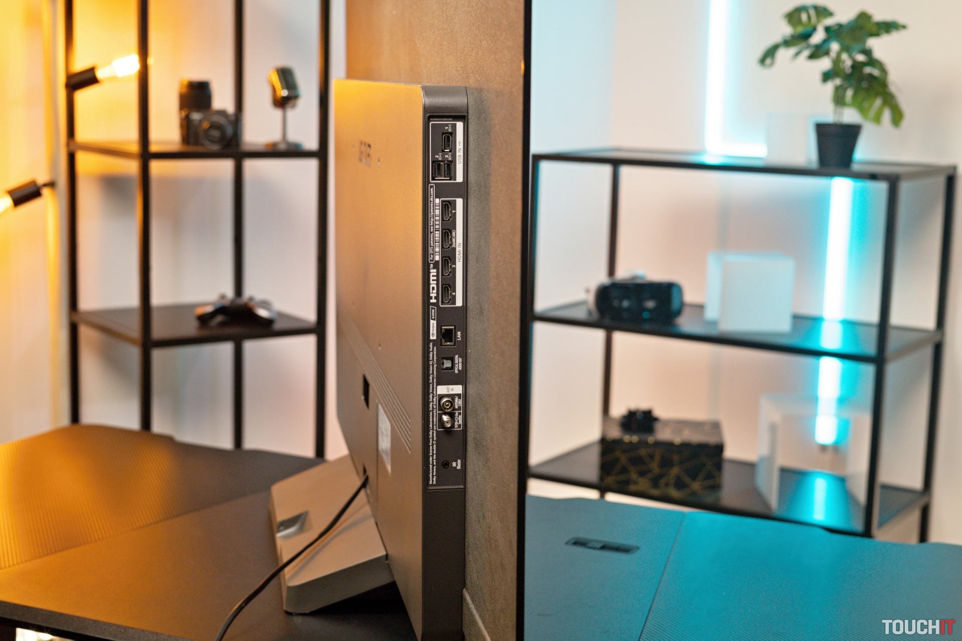 Na bočnej strane televízora nájdeme blok s prepojovacími portami a je ich dostatok. Oceňujeme, že všetky porty HDMI sú vo verzii 2.1, nie je tak problém pripojiť najnovšiu hernú konzolu. Okrem toho sú tu tri porty USB-A, ďalej Ethernet (televízor podporuje aj Wi-Fi pripojenie a Bluetooth) a je tu aj anténny vstup pre terestriálne alebo satelitné vysielanie. Súčasťou je aj šachta pre dekódovaciu kartu.