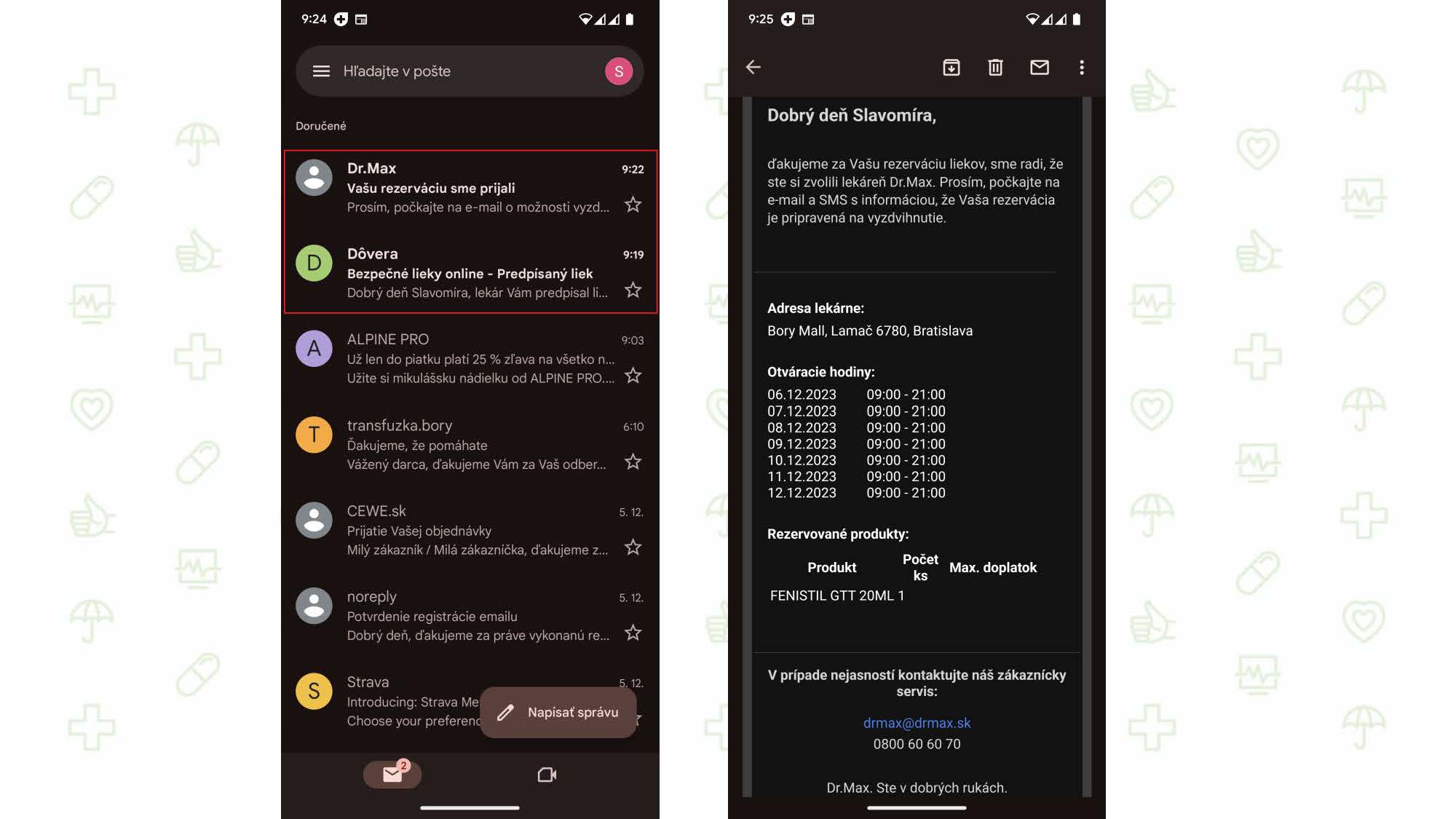 Overiť dostupnosť liekov a rezervovať si ich môžu v ktorejkoľvek z viac ako 400 lekární Dr. Max po celom Slovensku. Teda aj medzi sviatkami mimo domu sa pacienti dozvedia, kde hľadať liek, ktorý sa im práve minul.