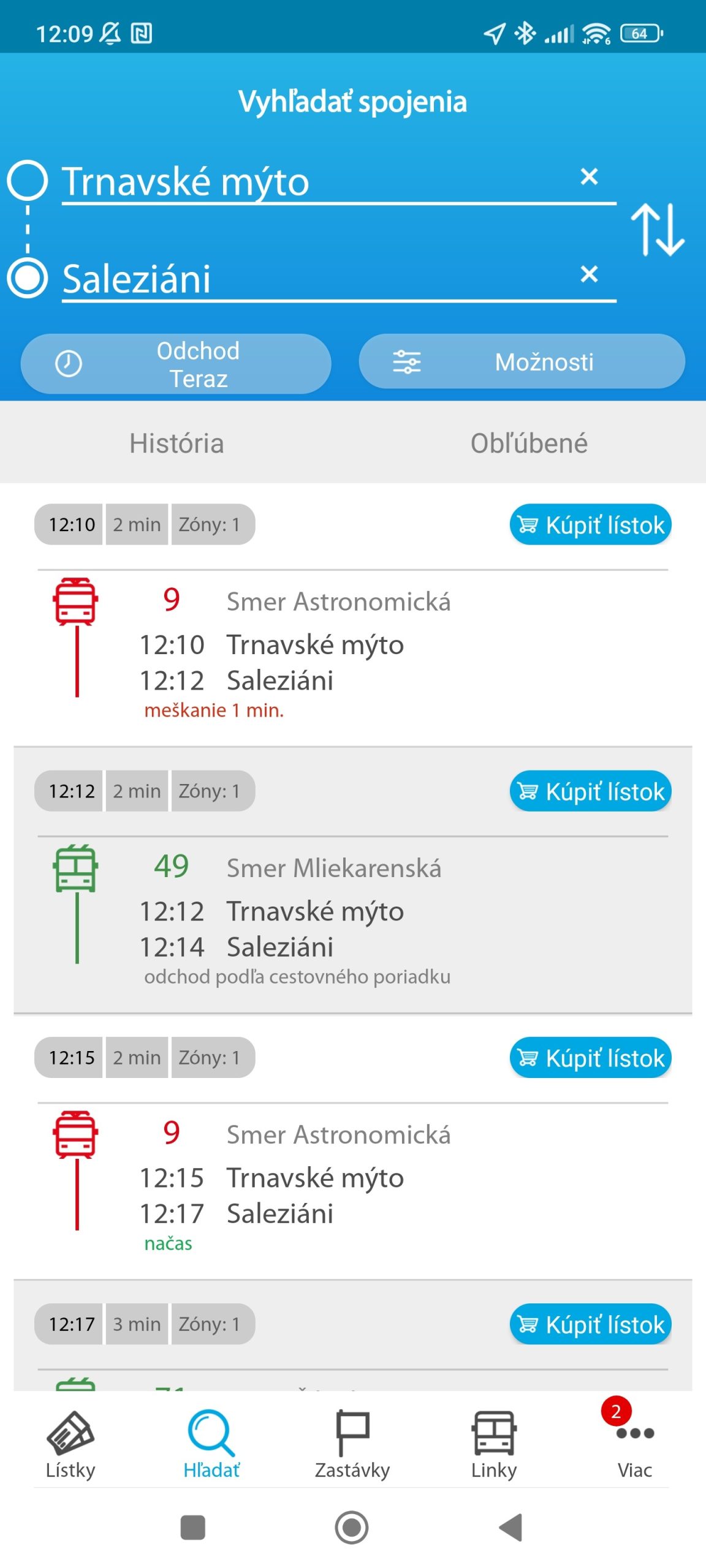 Cestovné lístky na MHD alebo prímestskú dopravu sa dajú kúpiť cez aplikáciu.
