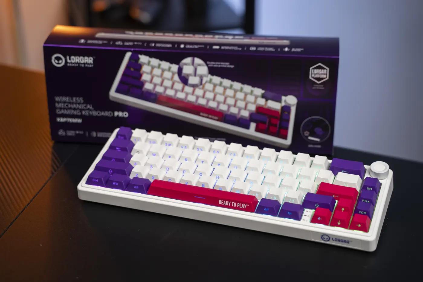 Druhým modelom je LORGAR KBP70MW. Ide o 65 % bezdrôtovú mechanickú hernú klávesnicu s 66 klávesmi a lineárnymi LORGAR Toxic Purple spínačmi (hot-swap). Ponúka RGB podsvietenie s 16,8 mil. farieb, pripojenie cez 2,4 GHz, Bluetooth 5.0 a USB-C. Výdrž batérie bez podsvietenia je až 416 hodín, 23 hodín s RGB. Gasket mount dizajn, double-shot PBT klávesy, multimediálne koliesko a bohaté príslušenstvo ocenia hráči aj používatelia, ktorí preferujú kompaktnosť a dlhú výdrž.