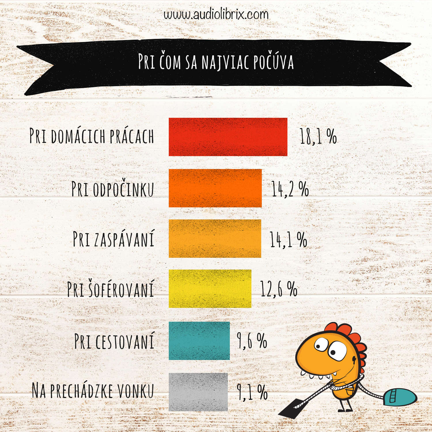 Veľký audioknižný prieskum, ktorý každoročne usporadúva spoločnosť Audiolibrix, si kladie za úlohy zmapovať audioknižný trh aj návyky samotných poslucháčov. Minulého ročníka sa zúčastnilo takmer 4 tisíc účastníkov, čím si udržuje pozíciu najväčšieho audioknižného prieskumu ako u nás, tak i v Európe. Rastie povedomie o audioknihách aj čas, ktorý s nimi ľudia trávia. Súčasná svetová situácia nás uzavrela v domovoch a nútila objavovať nové spôsoby trávenia voľného času, zábavy aj kultúry. Aj o tom vypovedajú výsledky prieskumu. Celých 12% respondentov sa s touto formou čítania prvýkrát zoznámilo v roku 2020. Z minuloročného prieskumu vyplýva, že ľudia začali počúvať častejšie a počúvaním trávia viac času ako v predchádzajúcich rokoch. 20% poslucháčov trávi s audioknihami viac ako 11 hodín týždenne. Zároveň vzrástol aj počet audiokníh, ktoré si respondenti počas roka vypočuli. 27% z nich počúvalo 6-10 audiokníh, v tesnom závese sa s 25% drží 11-20 audiokníh za rok. Počet respondentov počúvajúcich počas šoférovania, či cestovania MHD vzhľadom k situácii pochopiteľne klesol. Audioknihy si však našli svoje miesto aj v domácnostiach, kde 18% respondentov počúva audioknihy pri vykonávaní domácich prác. Audioknihy však pre poslucháčov neznamenajú len zvukovú kulisu pri iných činnostiach. 14% opýtaných ich počúva ako formu odpočinku, či pri ich počúvaní zaspáva. “Obzvlášť v dobe, keď sme všetci doma, je úloha audiokníh neoceniteľná. Na jednej strane môžete vyšetrovať zločiny pri obyčajných činnostiach ako je varenie obeda, na druhej strane sú skvelým pomocníkom pre rodičov. Zabavia celú rodinu, pomôžu so vzdelávaním a sú skvelou alternatívou namiesto celodenného vysedávania pri televízii,” doplňuje Michal Kočí, CTO spoločnosti Audiolibrix.Bez mobilných aplikácií sa nezaobídeme
