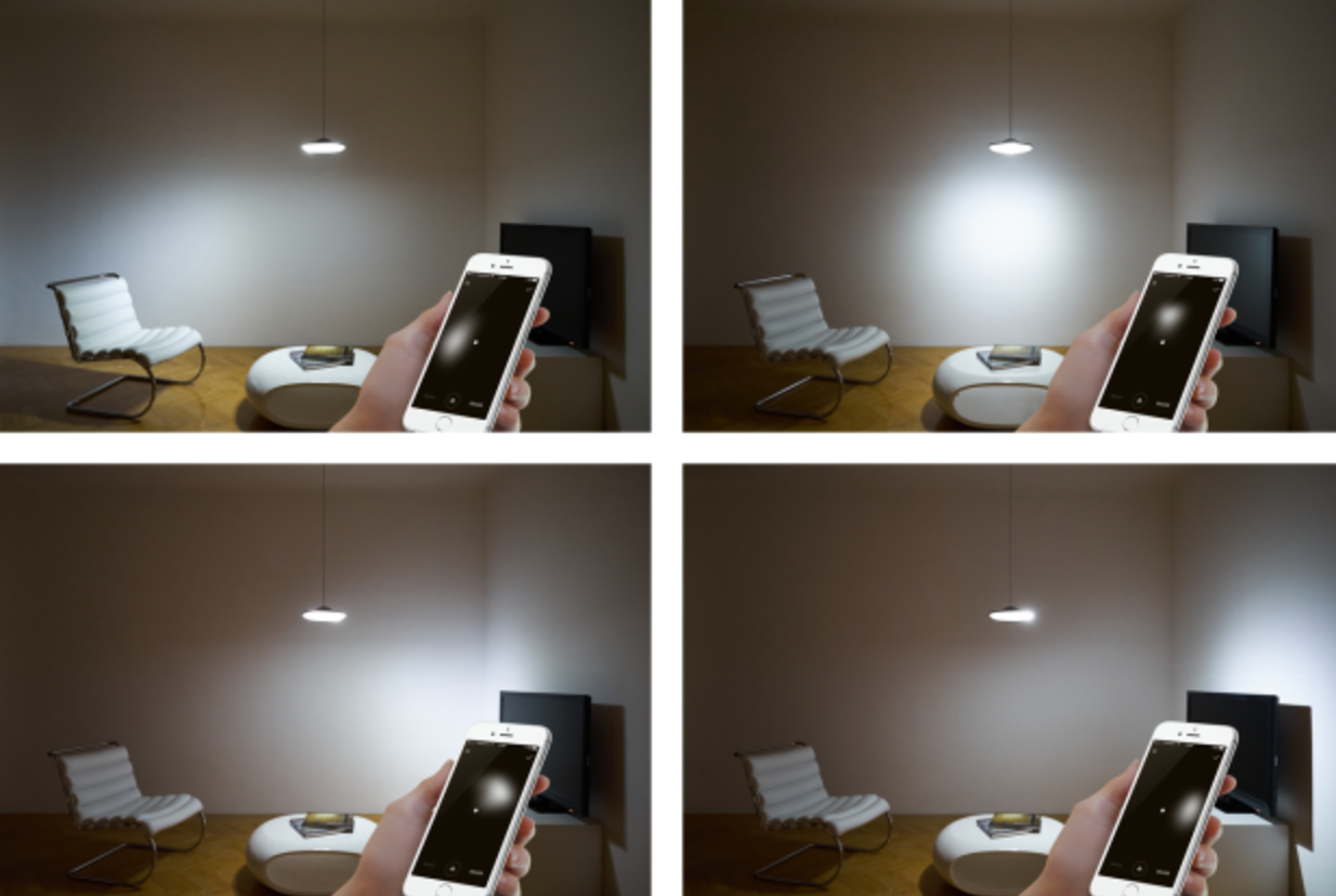 Všetko sa odohráva v aplikácii (dostupná pre Android a iOS), v ktorej si nakreslíte, resp. vytieňujete smer svietenia svetla. Tieňovanie je veľmi jemné – opätovným prechádzaním po jednom mieste (dotykom prsta) sa bude zvyšovať intenzita svetla. Teda, ak máte túto lampu v strede miestnosti a potrebujete osvetliť pravý roh, v aplikácii si „nakreslíte“ smer a intenzitu svetla. Všetko funguje v reálnom čase, počas tieňovania sa mení smer a intenzita svetla.