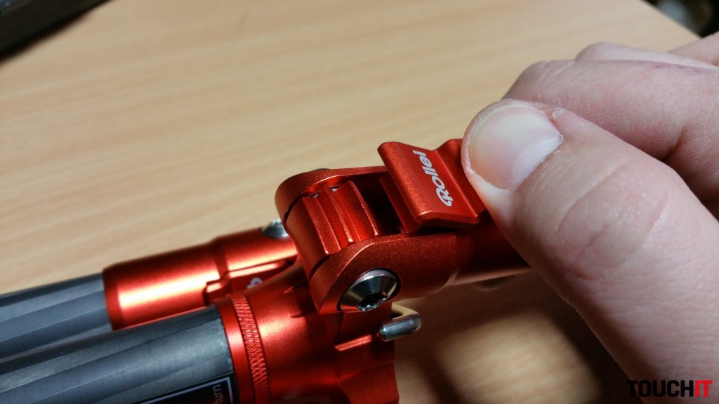 Blokovanie pohybu panoramatickej hlavy a nastavenej polohy kĺbu s vrchnou doskou, je pomocou dvoch samostatných zaisťovacích skrutiek, s minimálnym potrebným otočením pre zaistenie, čo je výhodou.