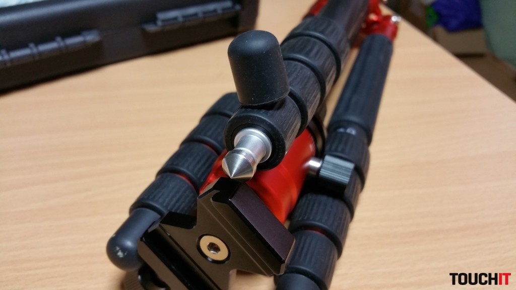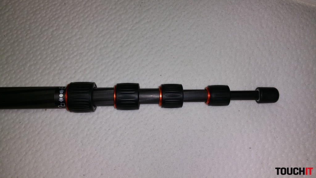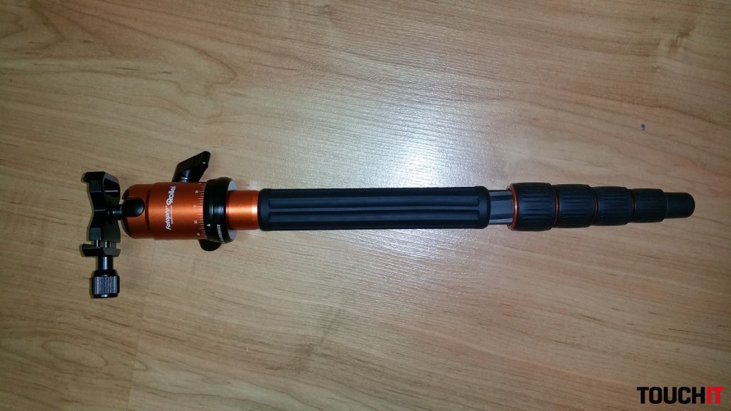 Prekvapením je, možnosť si jednoducho zo statívu Tripodu, urobiť Monopod. Odskrutkujete z kompletného statívu jednu nohu nato určenú, ktorá je viditeľná pogumovaným vrchným segmentom pre lepší úchop, ďalej odskrutkujete vrchnú časť statívu a spojíte ich v jeden celok, čím vznikne Monopod. Preňho je v balení aj zvlášť puzdro na opasok, čiže so skladovaním počas výletu to bude jednoduché. Maximálna výška monopodu je 110 cm a v zloženom stave má 36,5 cm.