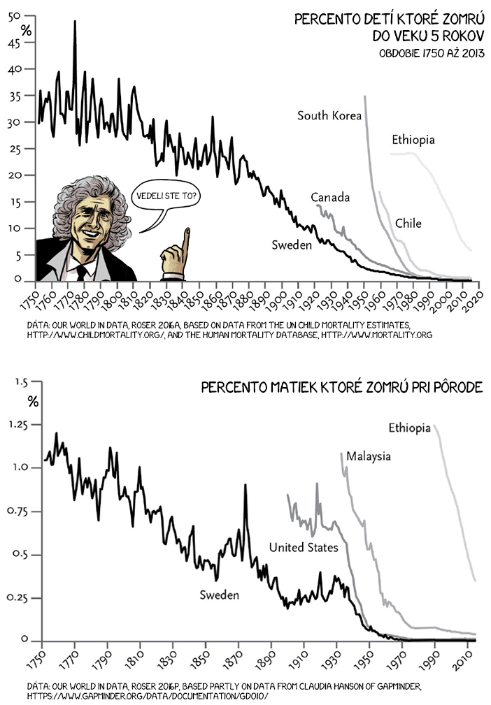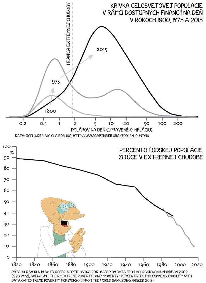 Svet sa neustále vo väčšine ohľadov zlepšuje. Áno, existuje obrovské množstvo stále nových a nových problémov, ktoré treba riešiť a nemožno si pred nimi zakrývať oči. Ale ak budete vidieť iba tie a budete sa systematicky vyhýbať dlhodobým štatistikám a dobrým správam o reálnom progrese, budete mať veľmi temný a hlavne celkom nesprávny pohľad na svet. A to nie je nikdy dobre.