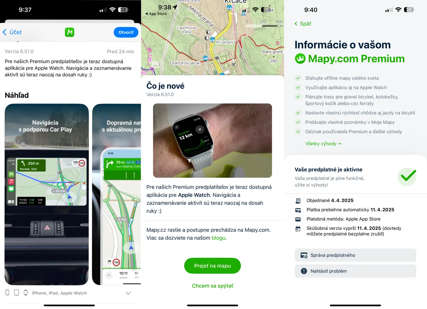 Mapy.com dostali aplikáciu pre Apple Watch a hodinky s Wear OS, vyžaduje prémiové predplatné