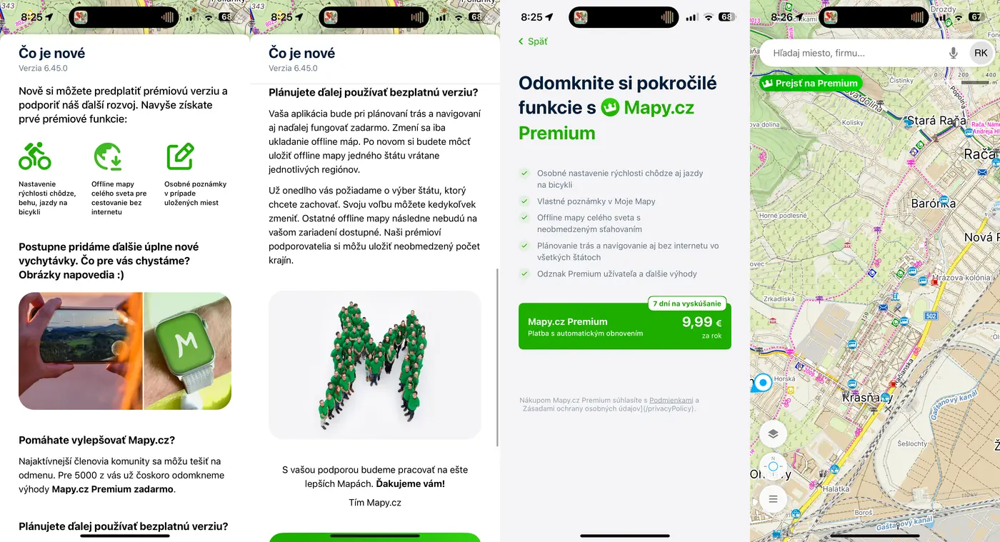 Obľúbená služba Mapy.cz vydala aktualizáciu mobilnej aplikácie pre iPhone na verziu 6.45. Jej hlavnou novinkou je spustenie plateného predplatného Premium, na ktoré Mapy.cz upozorňovali v posledných týždňoch.
