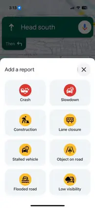 Spoločnosť Google už minulý rok zjednodušila proces hlásenia incidentov pridaním tlačidla „Pridať hlásenie“ do bočného panela aplikácie, čo umožňuje rýchlejšie označenie problémov na ceste počas jazdy.