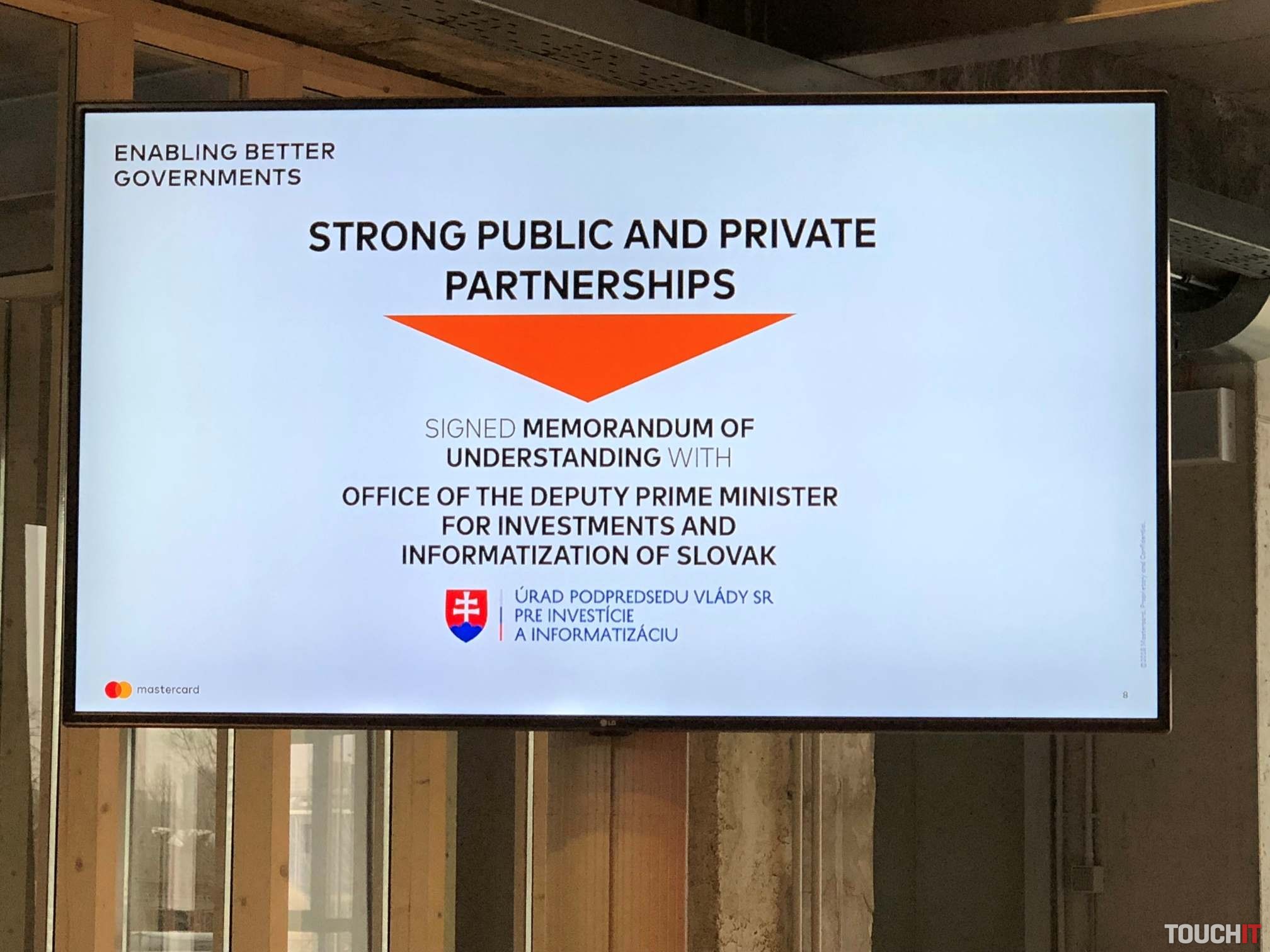 V rámci Slovenska bolo podpísané memorandum za účasti Petra Pellegriniho, podpredsedu vlády SR pre investície a informatizáciu. Mastercard má know-how a môže využiť znalosti z iných trhov. Memorandum, ktoré bolo podpísané, sa týka oblasti zavádzania kartových platieb v organizáciách štátu, tzv. Government Payments ale aj oblasti Smart Cities.
