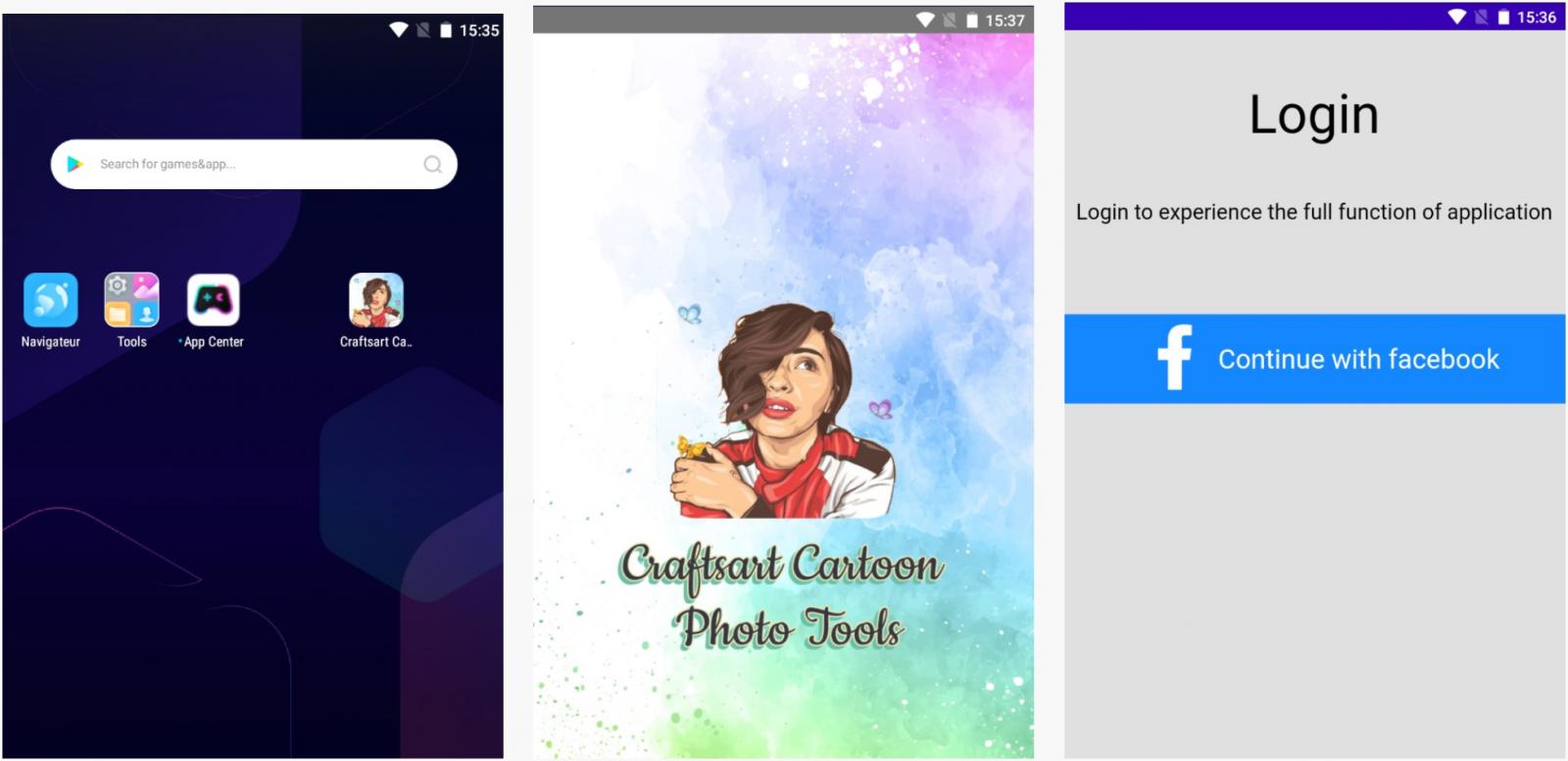 Portál Phandroid informoval, že jedna z takýchto aplikácií je v skutočnosti trójsky kôň, ktorého cieľom je ukradnúť prihlasovacie údaje do Facebooku. Aplikácia sa nazýva Craftsart Cartoon Photo Tools.