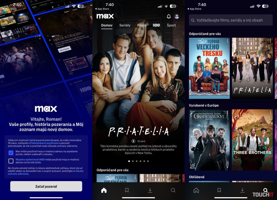 Pokiaľ ste doteraz používali HBO Max (či už priamo alebo cez operátora), do novej služby Max sa môžete prihlásiť pomocou vášho existujúceho konta. Vo väčšine prípadov si však musíte stiahnuť novú aplikáciu – počas nášho testovania to platilo pre mobilné aplikácie pre Android a iOS a aj pre aplikáciu pre smart televízor Samsung.