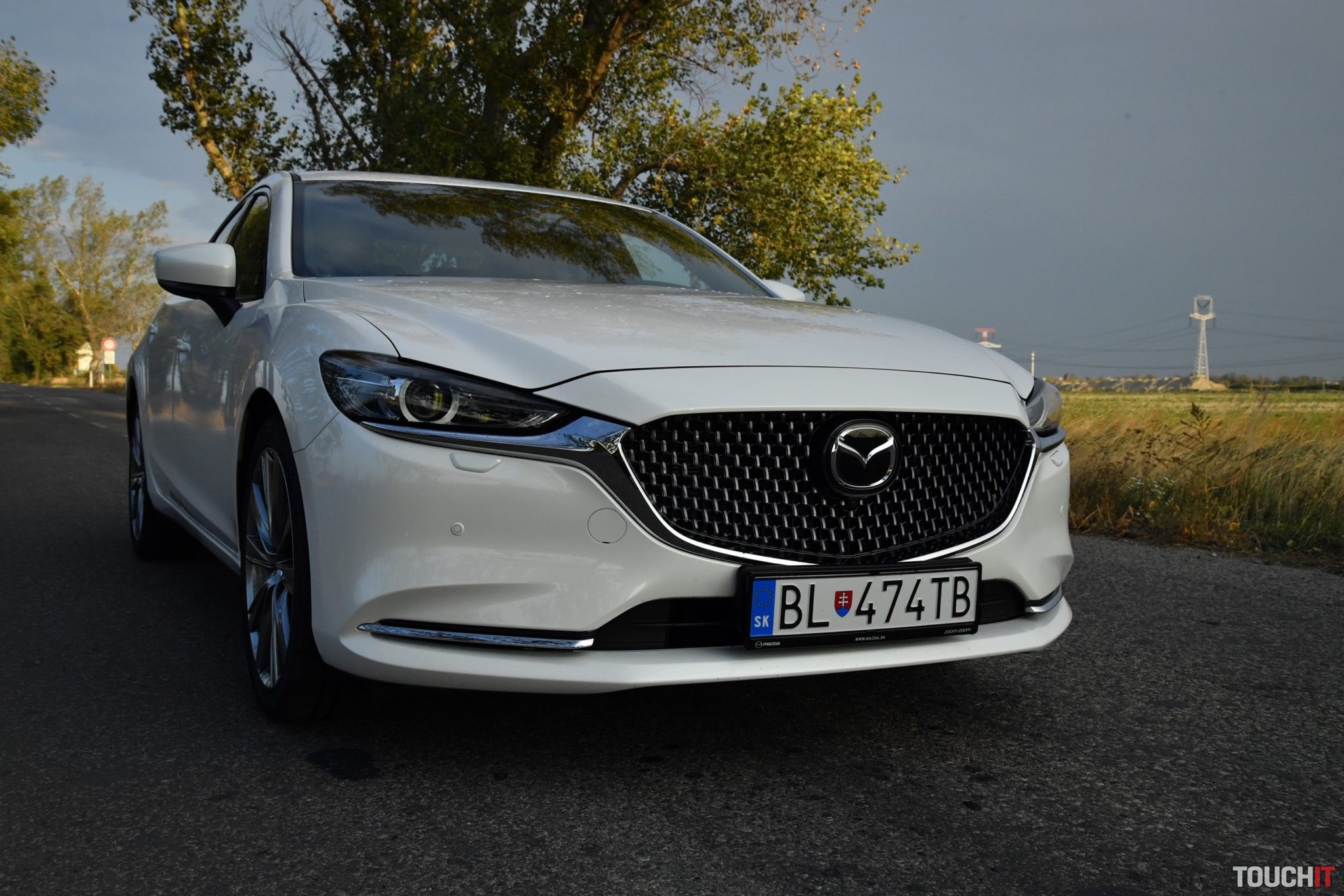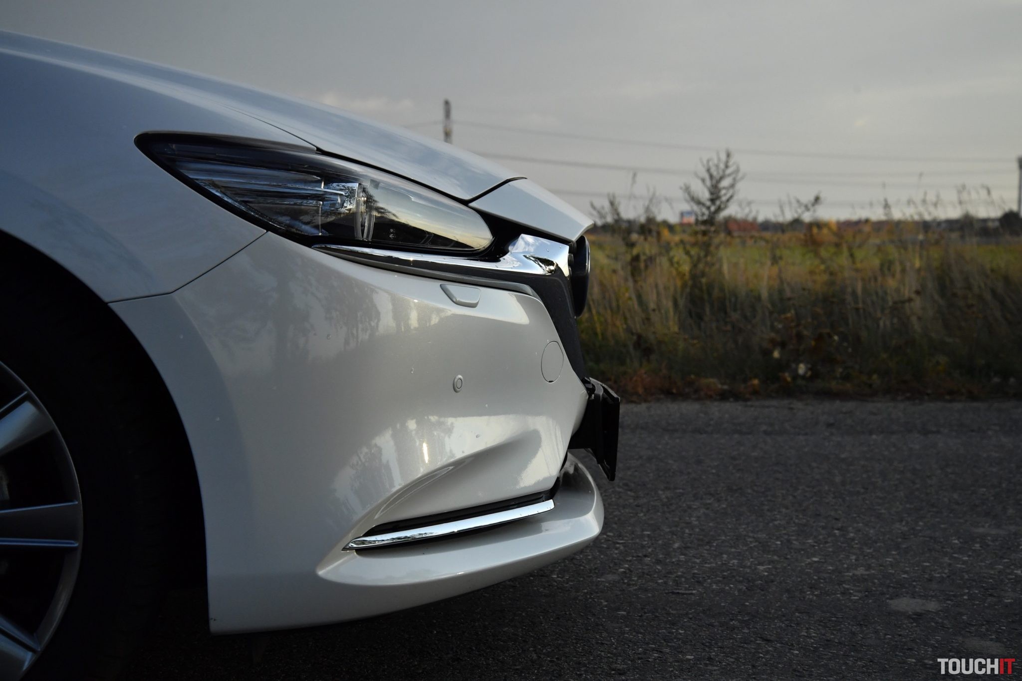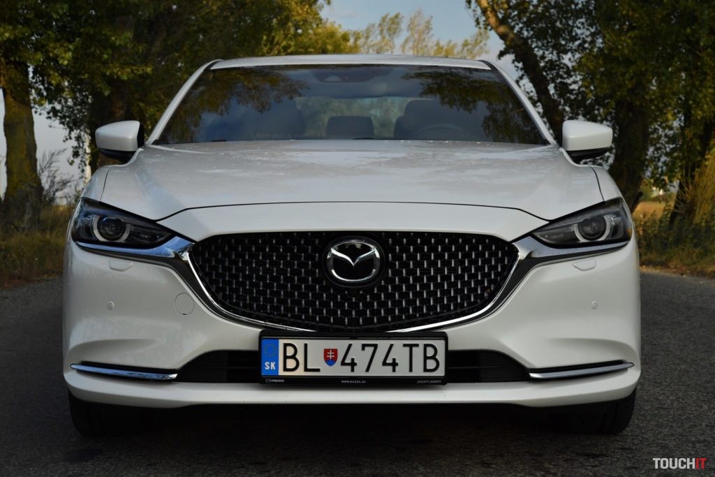 Červenej bolo dosť, k Mazde síce patrí, ale obzerajte sa po tejto bielej, je ako z rozprávky. Pozrime sa na ten dizajn ešte jedným okom. Nejde o žiadnu revolúciu, ale poriadnu evolúciu, ktorá sa podarila. Kompletne prerobená je predná maska, ktorá je výrazne väčšia a má zaujímavý segmentový vzor. Zmenený je aj dizajn oboch nárazníkov – v podstate nezostal kameň na kameni a to je dobre. Ak vedľa seba postavíte novú a predošlú 6ku, tak pochopíte o čom hovorím. Spodok masky chladiča lemuje masívna chrómová lišta, ktorá prechádza až pod adaptívne LED svetlomety. Tie sú viac natiahnuté a užšie.