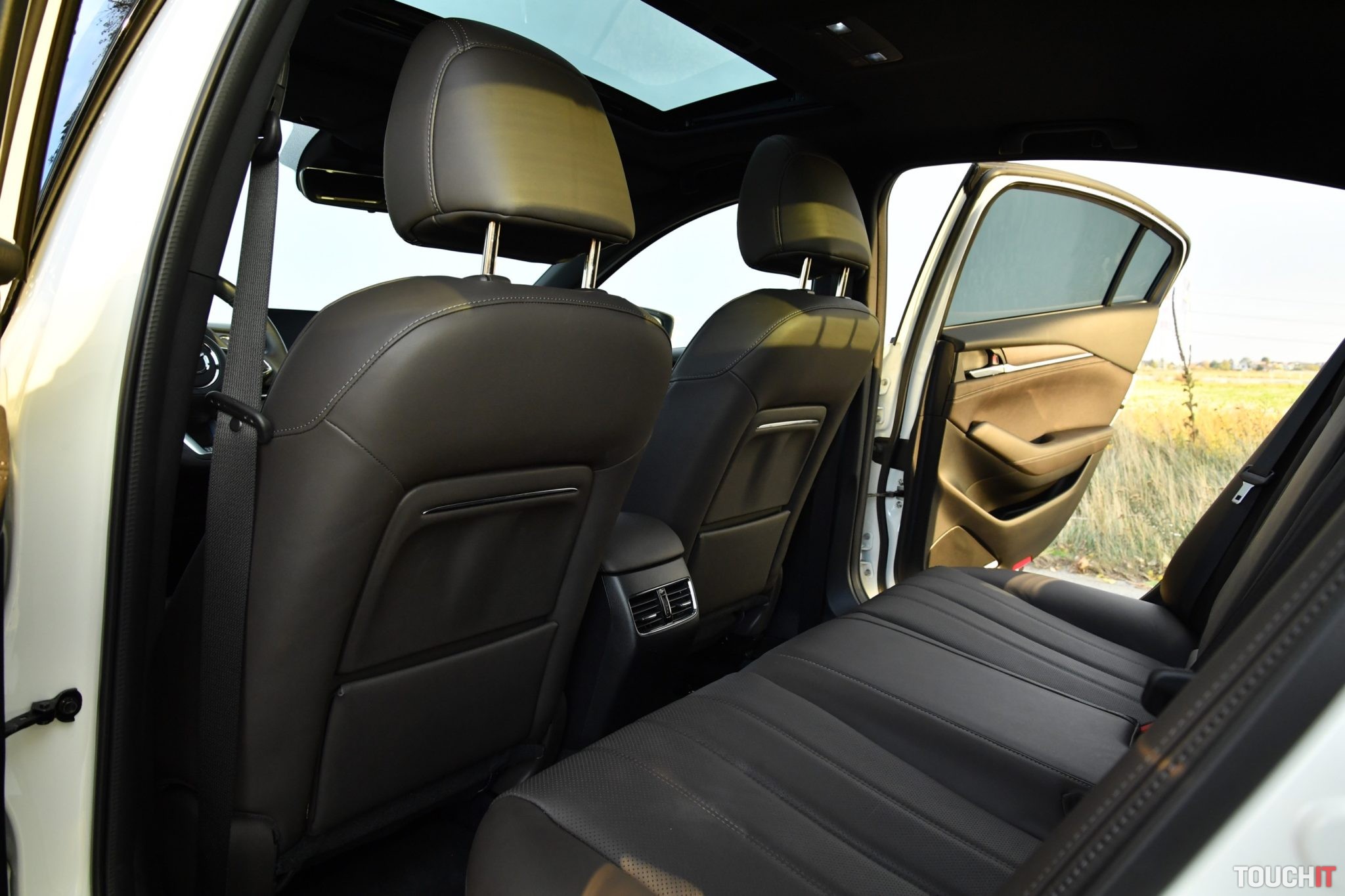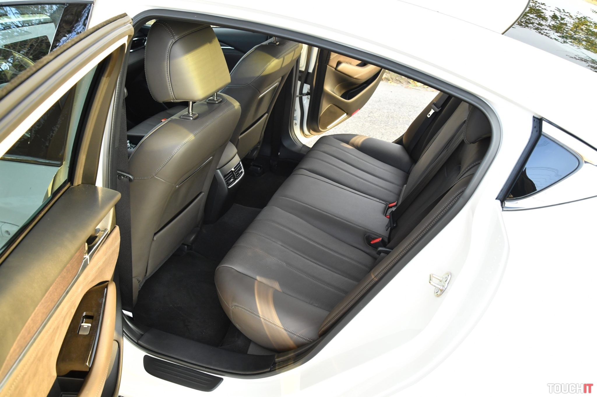 Vzhľadom na typ karosérie a športovo elegantné línie ma prekvapil aj životný priestor na zadných sedadlách. Sadnem si sám za seba a relatívne pohodlne by som sa cítil aj na dlhšej trase. Dostatok priestoru majú chodidlá, kolená, ale aj hlava. Sedadlá sú príjemne mäkké a veľmi komfortné. Zadní pasažieri so mnou tieto pocity zdieľali. Oceňujem prítomnosť výduchov ventilácie a lakťovej opierky s priestorom na poháre a dvomi USB-A portami na nabíjanie zariadení. V lakťovej opierke sú aj ovládače vyhrievania zadných sedadiel.