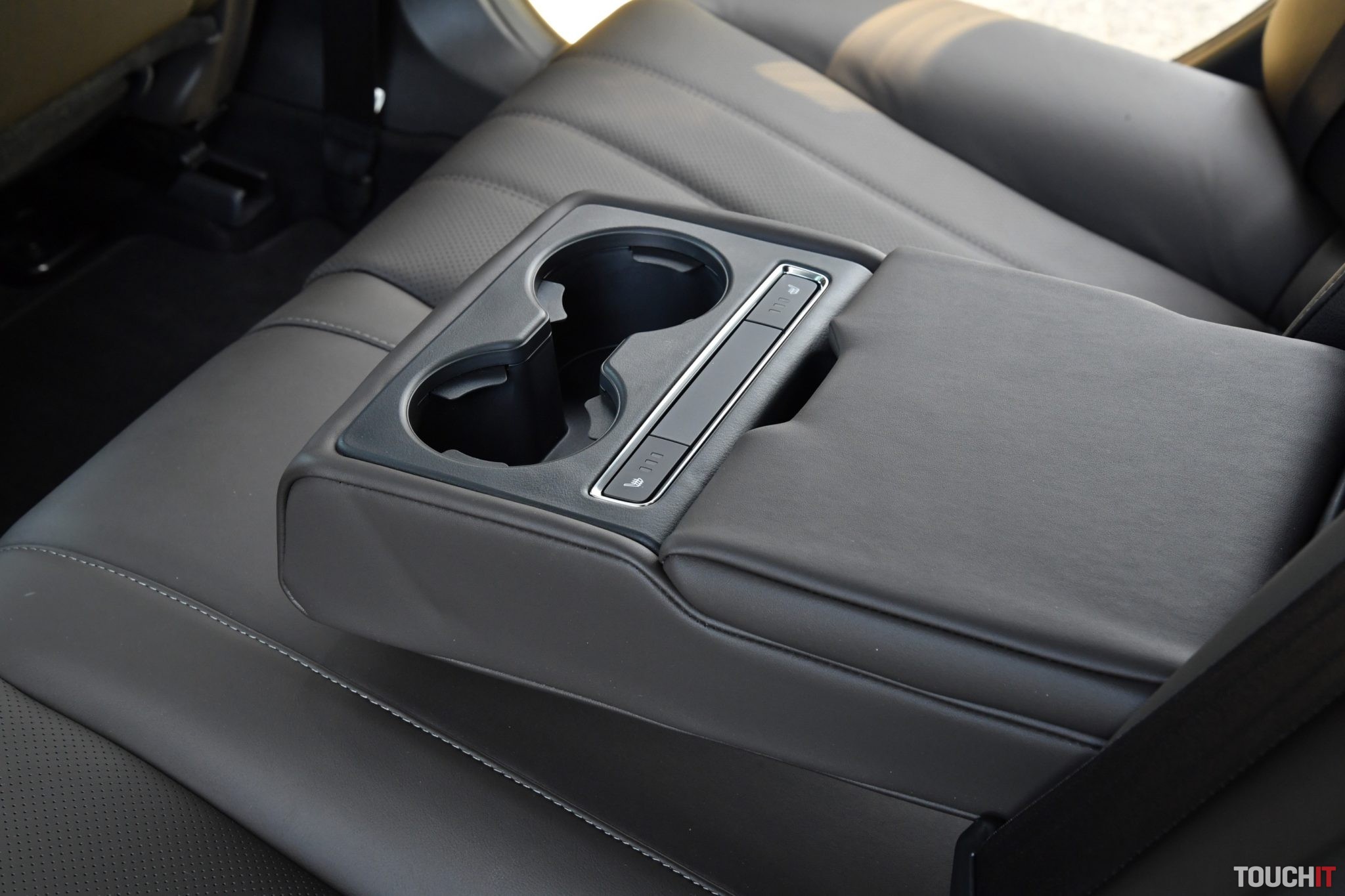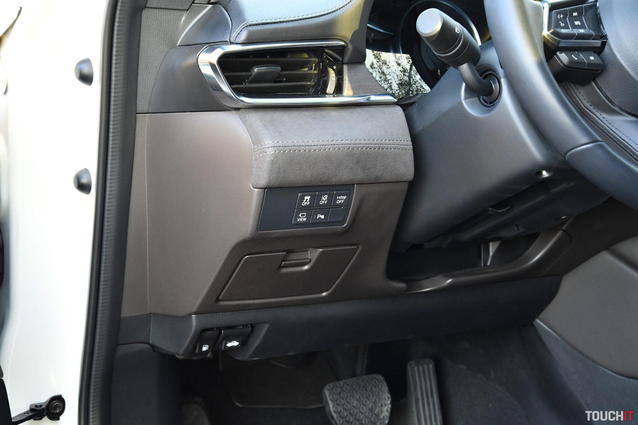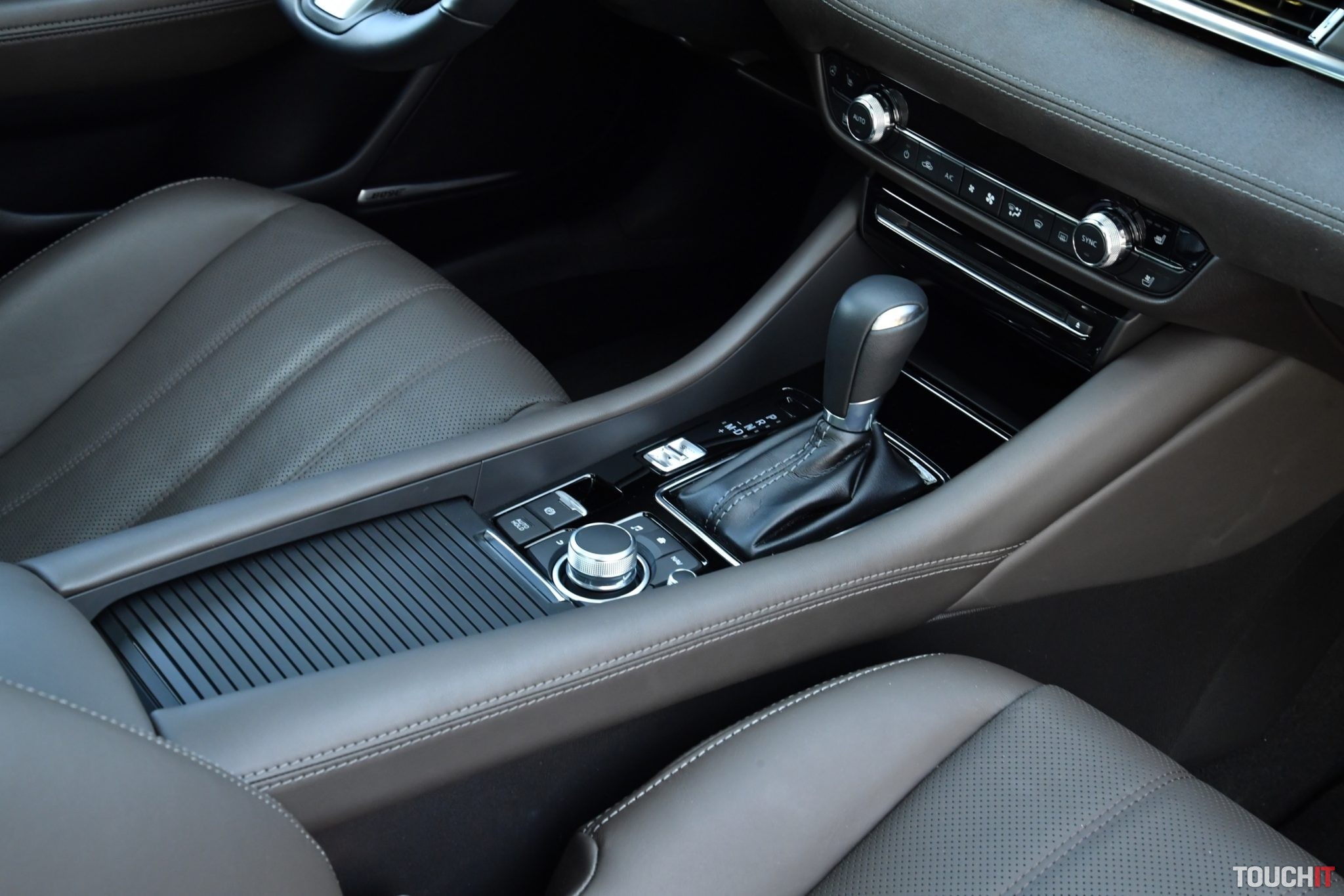 Samozrejmosťou je kožený multifunkčný volant, ktorý je taktiež vyhrievaný. Do toho všetkého zapadá masívny stredový tunel obšívaný kožou, kde sú umiestnené dôležité ovládacie prvky, ako aj volič automatickej prevodovky. Nechýba ani roletkou krytý priestor na 2 poháre, kde sa dajú odložiť aj väčšie smartfóny. Priestoru je dostatok nie len pre pasažierov, ale aj rôzne drobnosti.