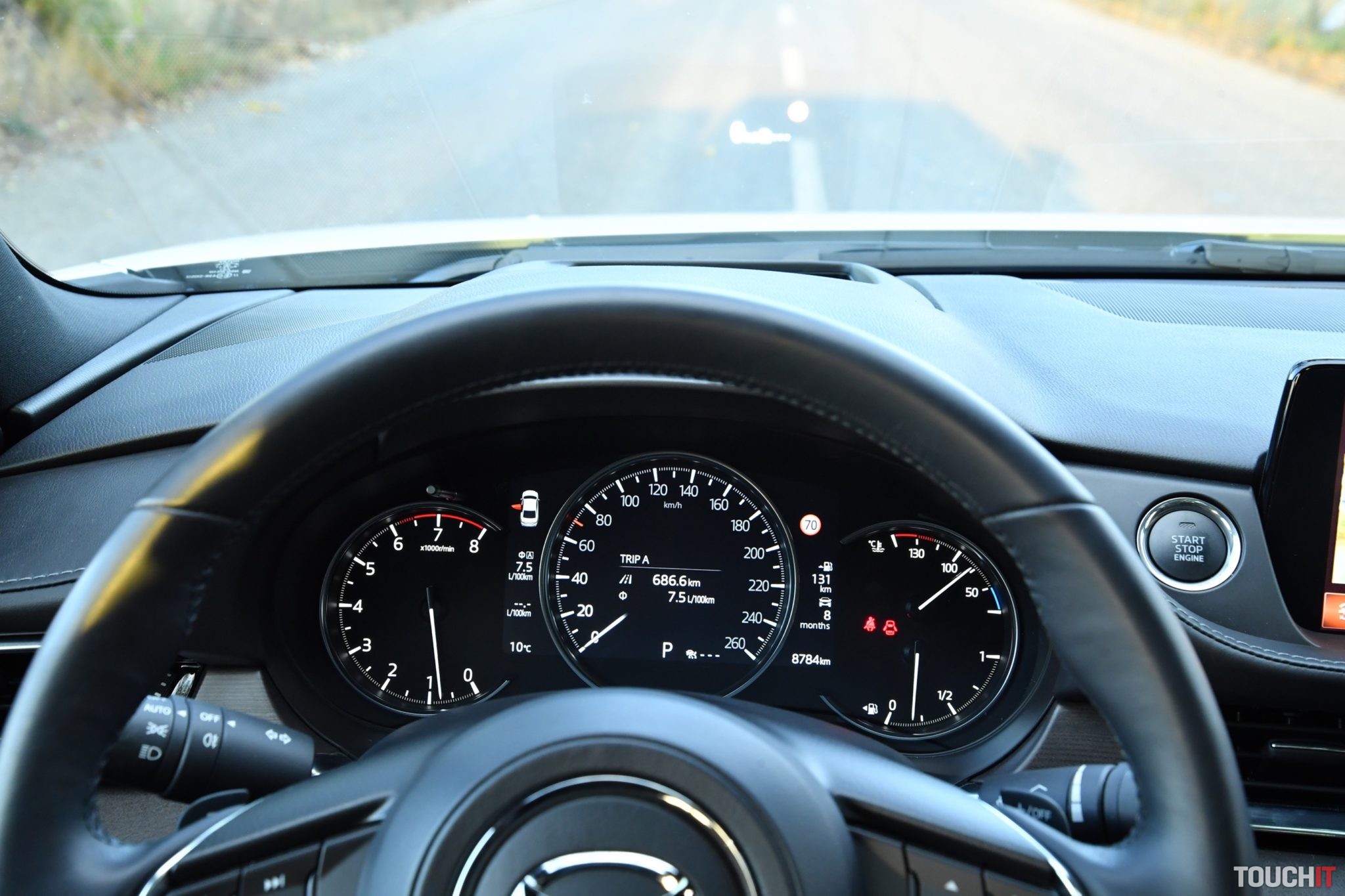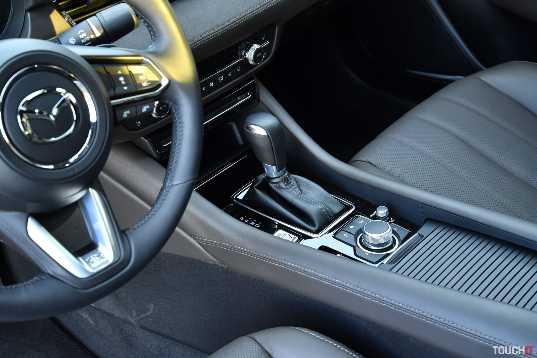 Centrom nastavení a útočiskom multimédií je systém MZD Connect, ktorý sa ovláda cez veľký 8“ dotykový LCD displej v strede palubnej dosky. Taktiež sa ovláda aj pomocou ovládacích prvkov v stredovej konzole (kruhový ovládač + tlačidlá rýchleho prístupu k dôležitým funkciám). Hlavnému displeju sekunduje 7“ digitálny prístrojový panel pred vodičom, ktorý je obklopený analógovými ukazovateľmi. Celé zobrazenie je veľmi prehľadné, ale ovládanie systému cez združený prístrojový panel (ovládanie na volante) je „v plienkach“. Zobraziť sa toho dá relatívne dosť, čo je výhoda, ale nastaviť takmer nič.
