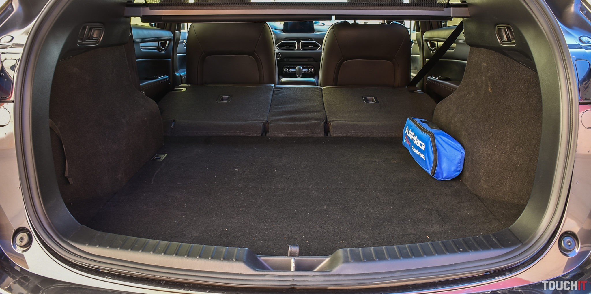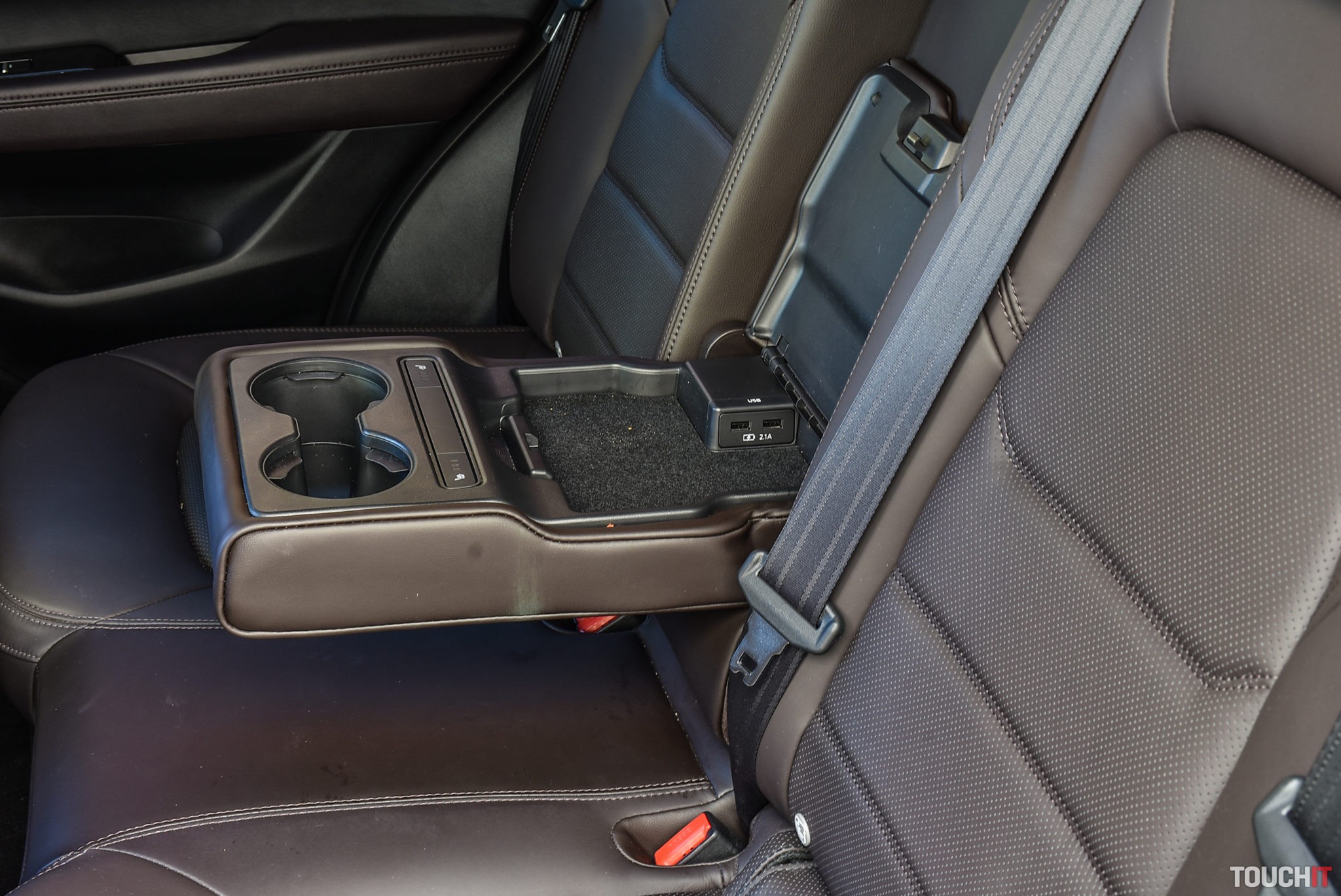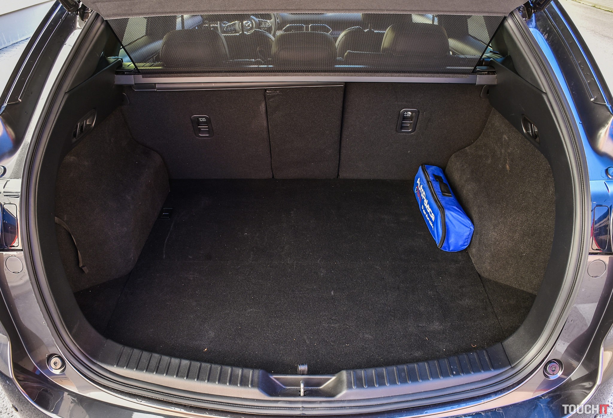 Vzadu to nie je o nič horšie. Zadní pasažieri majú k dispozícii dve plnohodnotné a komfortné miesta + stred, ktorý je skôr núdzový. S prehľadom sa sem zmestia dve väčšie autosedačky + zostáva priestor na drobnosti (ISOfix je samozrejmosťou). Ak vozíte dospelých, resp. odrastené deti, tak poteší dostatok priestoru na nohy, ale aj hlavu. CX-5 je jedno z mála bežných SUV, kde si aj ja dokážem relatívne pohodlne sadnúť v druhom rade – sám za seba! (výška 2 metre, tak preto..). Teraz skočíme do kufra, ktorý ponúka základný objem 506 litrov a po sklopení operadiel je to až 1620 L. To je fajn, nie? Ešte dodám, že veko batožinového priestoru je ovládané elektricky, no rýchlosť otvárania by mohla byť lepšia – to som kritizoval aj počas prvého testu.