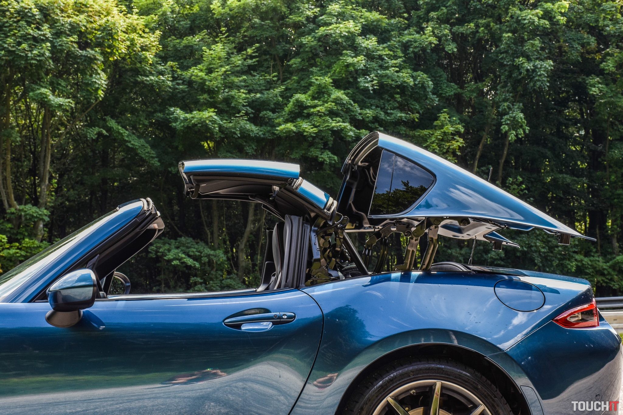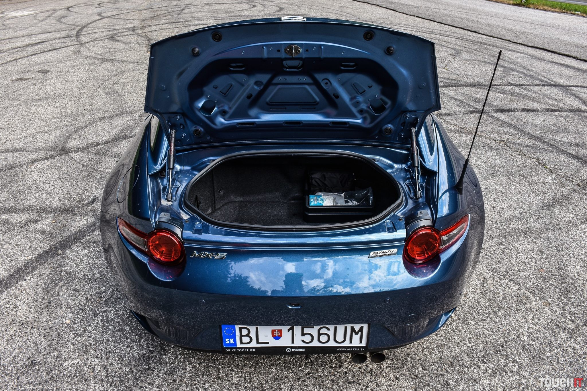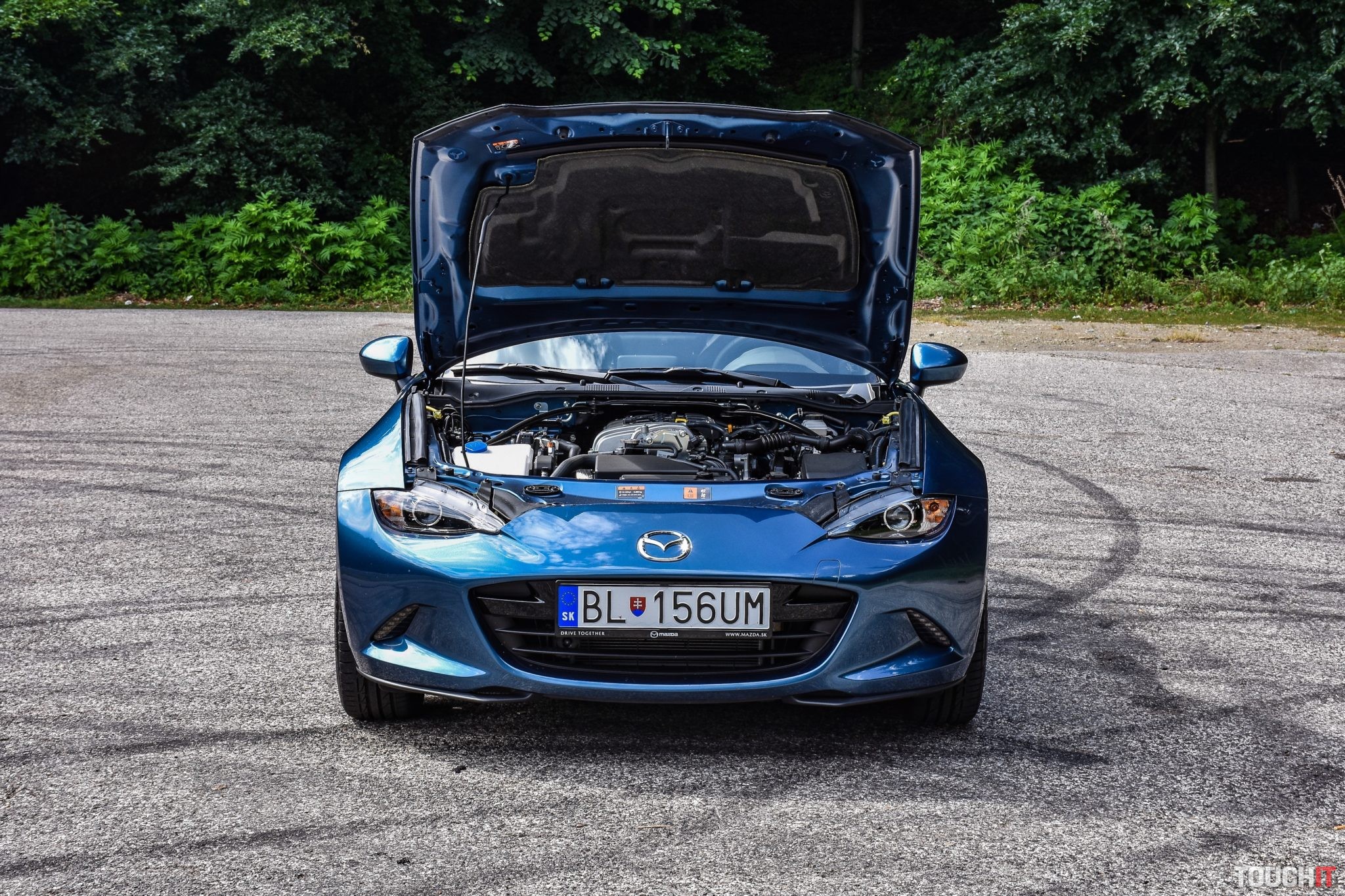 Z tohoto auta som mal úplne iný „feeling“ ako z iných áut podobnej kategórie. Sedíte kúsok pred zadnými kolesami a tým pádom je aj jeho ovládanie pocitovo trošku iné. Občas som sa cítil ako v motokáre (aj som tak vyzeral). Jazda s Mazdou MX-5 je o čistej voľnosti a radosti. O tieto dva faktory sa stará benzínový atmosférický 4-valec (1998 cm3)s výkonom 135 kW (184 ps) a max. krútiacim momentom 205 Nm, ktorý je dosiahnuteľný od 4000 rpm. Červené pole začína až na 7000 rpm, takže čistá japonská klasika bez turba – treba ho točiť a točiť, potom je to zábava. Výkon spracúva veľmi dobre nastavená 6-stupňová manuálna prevodovka, ktorá posiela všetkú silu na zadné kolesá.