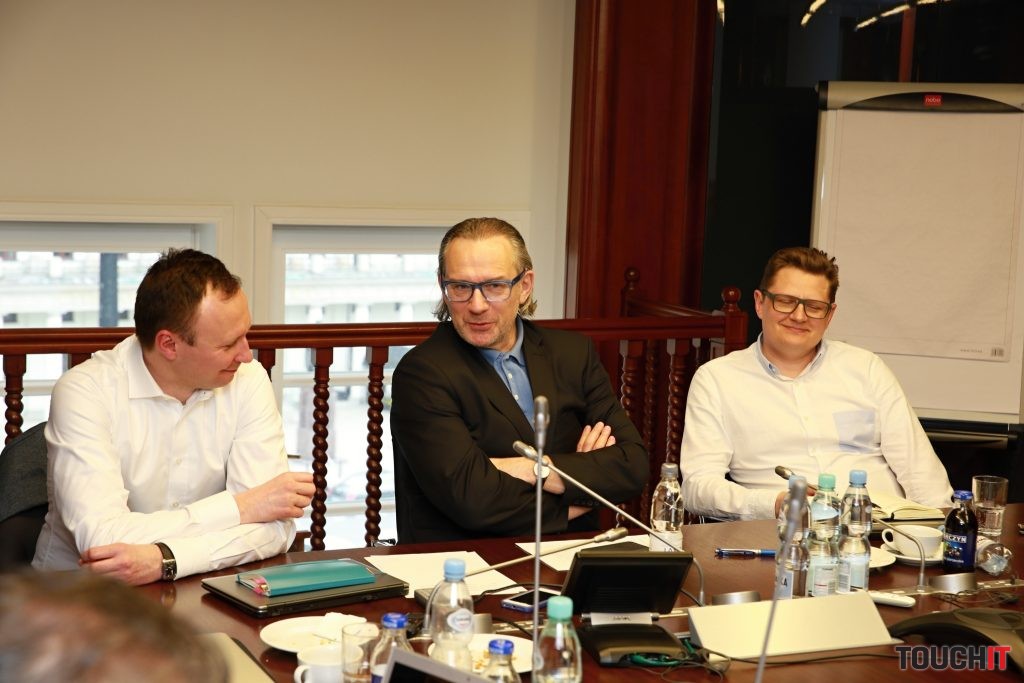 Hlavní predstavitelia mBank, v strede je Cezary Stypułkowski, CEO mBank pri našej diskusii