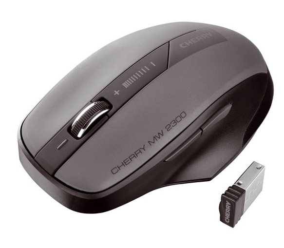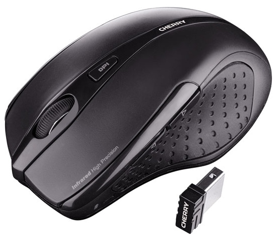 Myš pre náročnejších kancelárskych pracantov. Pri prvom kontakte sme badali vyššiu hmotnosť, no tá je daná hlavne pevným plastovým telom. Vyhotovenie je skutočne na jednotku a presne odpovedá tejto značke. Chrbát aj pravý bok je z plastu, ktorý je mierne zdrsnený a myš sa tak dá stabilne držať v ruke. Je to materiál vhodný pre tých, ktorým leštené plasty príliš „nesedia“ do ruky. Myš má na spodku podložky, ktorých kĺzavosť je dobrá aj na nerovnom povrchu. Používať ju teda môžete skutočne univerzálne. Nie je síce najmenšia, no práve to sme ocenili. Vypuklý chrbát a veľmi dobrú ergonómiu pre pravákov. Na ľavej strane v mieste pre uchopenie palcom, je pogumovanie. Nad ním dve tlačidlá na pohyb vpred a vzad. Tlačidlá si však vďaka softvéru Cherry Keyboard Manager môžete nakonfigurovať podľa seba. Rolovacie koliesko je nehlučné pri rolovaní, stlačenie vydáva rovnaký zvuk ako hlavné tlačidlá myši. Nie sú však vyslovene hlučné. Na hornej strane pred kolieskom je umiestnené tlačidlo na zmenu DPI. Využívať môžete dva režimy a to 1000 a 1750 dpi. Myš sa v dobe nečinnosti prepne do úsporného režimu, no v prípade potreby je na spodnej strane vypínač. O správnosť rozpoznania snímaného povrchu sa stará infračervený snímač a myš si poradí aj s lesklými plochami. Priesvitné plochy nezvláda, no to väčšina myší na trhu. Použiť sa dá aj na leštených povrchoch, typicky stolíky v kaviarňach. No ideálne je použiť ako podklad časopis alebo noviny. Fóliou zaliaty nápojová lístok nebude to pravé riešenie, pre podnik v ktorom sedíte ani pre vás.