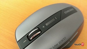 Táto myš sa veľmi pohodlne drží v ruke. Na rozdiel od modelu Cherry MW 3000 nemá tak vypuklý chrbát, ale je predĺžená. Aj preto sme si ju obľúbili. Myš je v kombinácii černej a sivej. V miestach s čerňou farbou sú prvky plastové. Sivé prvky vrátane bočných tlačidiel sú síce tiež plastové, no sú aj jemne pogumované. Veľmi príjemné na dotyk. Výhrady však máme k rolovaciemu koliesku. To pri rýchlejších pohyb mierne vŕzga. Zmena dpi 1000 – 1500 – 2000 sa vykonáva cez tlačidlá na chrbte myši. O aktuálnom nastavení dpi informuje LED dióda jednou z troch farieb. Myš má tiché tlačidlá, body sme uberali koliesku kvôli jeho vŕzganiu. Napájanie dvomi baterkami typu AA postačí na tri roky používania. Reálne to bude menej, no aj tak je to veľmi dlhá výdrž. Kĺzavosť myši je veľmi dobrá, no treba počítať so zvýšenou hmotnosťou. Celková robustnosť sa nám ale páčila a ocenili sme aj v tomto prípade softvér priamo od výrobcu na zmenu funkcií piatich tlačidiel. Stlačenie kolieska nám tak spúšťa internetový prehliadač. Pohyb na rôznych povrchoch odpovedá modelu MW 3000, ktorý má infračervený snímač. Nakoniec, aj s LED sme vystačili až na priesvitný povrch je myš skutočne univerzálna.
