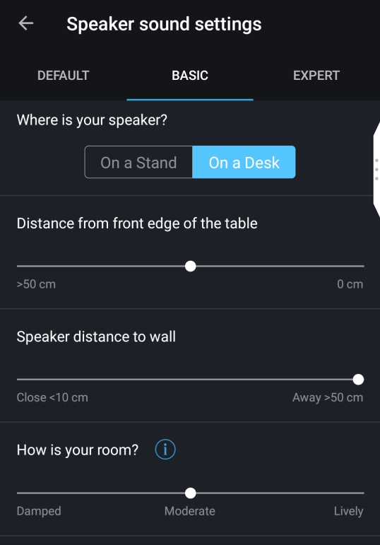 Výrobca pripravil pre smartfóny s Androidom a iOS aplikáciu na nastavenie reproduktora a ovládanie hudby. Aplikácia slúži na prvotné nastavenie a pripojenie reproduktora do vašej internetovej siete. Pre nás boli podstatné nastavenia, prehrávač máme vlastný, Spotify a tiež na súbory priamo v smartfóne. Vlastne nahrádza tlačidlá na zadnom paneli, ktoré prepínajú ekvalizér podľa umiestnenia v priestore.
