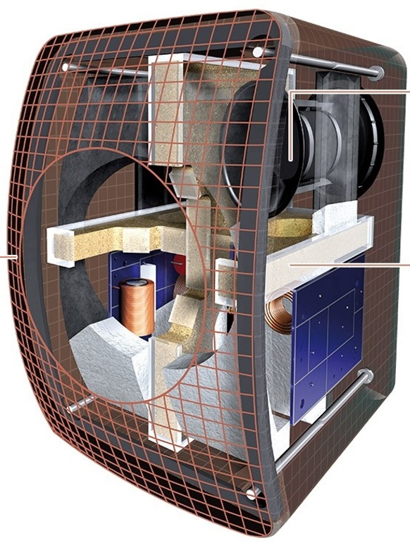 Podstatná na tejto stereo súprave je zvuková technológia. Tá v sebe spája špeciálne vnútorné rozloženie komponentov v reproduktorovej skrini. Mierne zakrivený predný kryt nemá len ulahodiť oku, ale poslúžiť na lepšie dotvorenie zvuku z vnútornej časti komponentov.