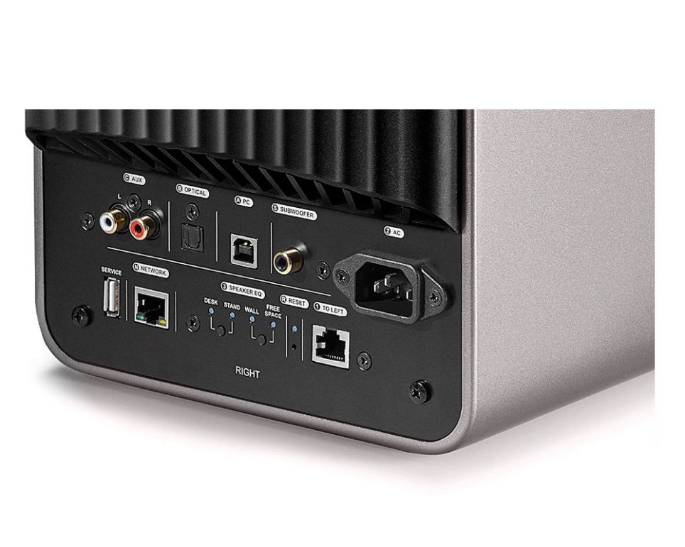Každý reproduktor má vlastné pripojenie a vlastný napájací zdroj. Prepájajú sa ethernetovým káblom. Bez toho, aby ste ich takto prepojili, nebudú fungovať. V tomto smere tu nie je bezdrôtové prepojenie. Do počítačovej siete sa dá zostava pripojiť cez ethernetový kábel. My sme testovali zostavu s pripojením na Wi-Fi a cez Bluetooth 4.0. To bol aj náš primárny záujem, keďže ide o „Wireless“ zostavu. Pravý reproduktor má dotykové ovládanie na prepájanie zdroja zvuku a úpravu hlasitosti. K zostave sa dá pripojiť samostatný subwoofer, káblom zo zadnej strany. Ďalšou možnosťou je použiť USB kábel na prepojenie s počítačom 1x digitálny optický vstup alebo dvojicu koaxiálnych AUX káblov.