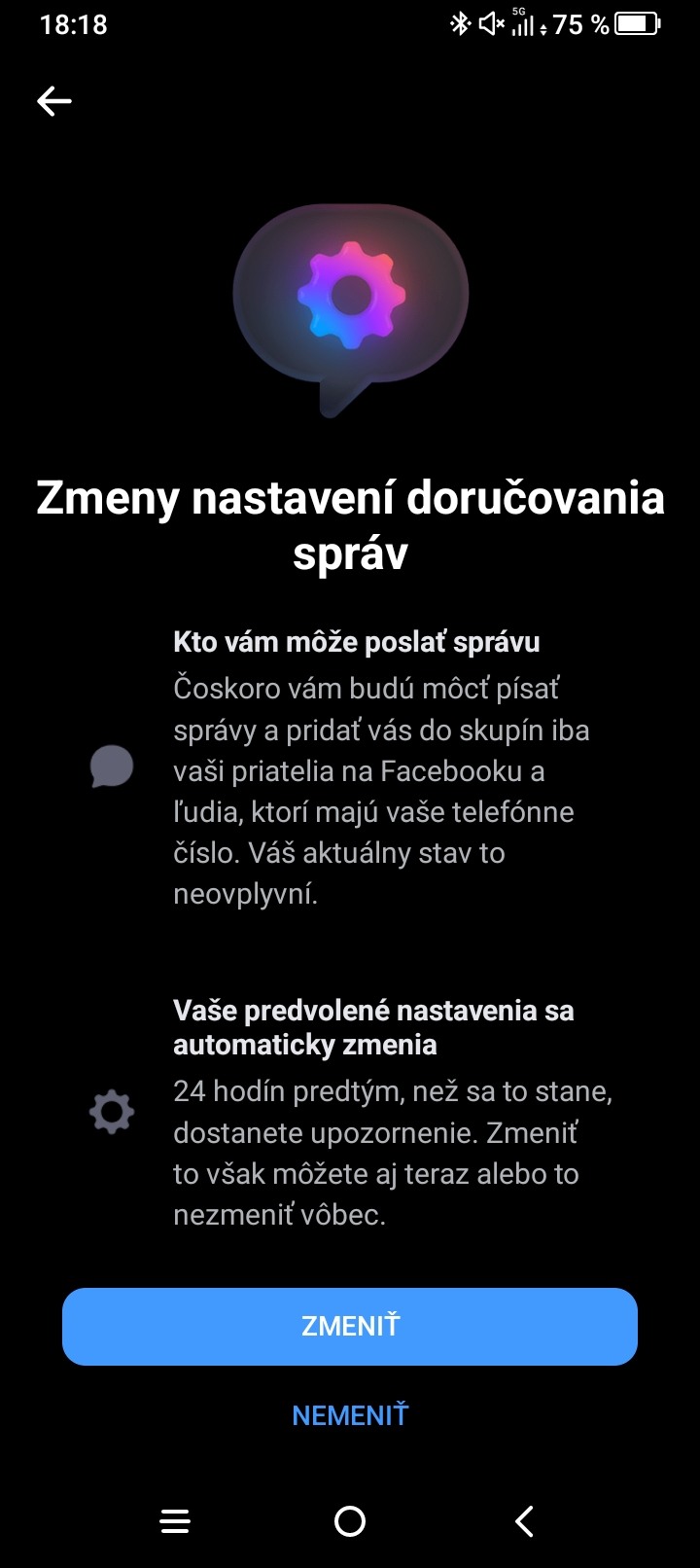 V júni začala aplikácia Messenger informovať o tom, že sa zmení spôsob doručovania správ. Ide o to, kto vás bude môcť kontaktovať a napísať vám správu. Je to spôsob, aby sa s vami mohli spojiť len vaši aktuálni priatelia alebo skupiny, ktoré už odoberáte.