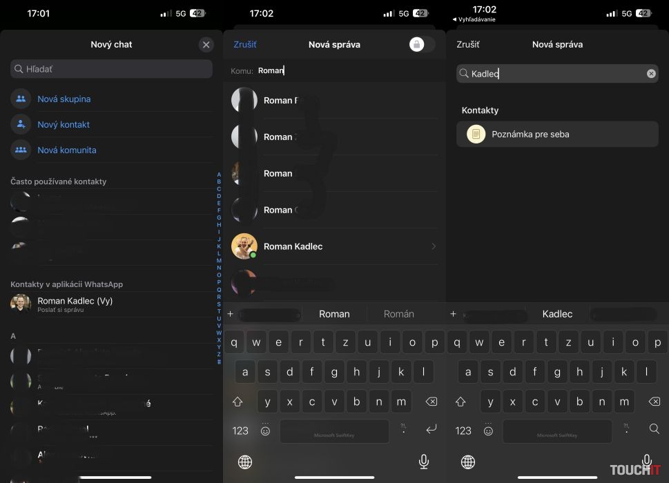 V prípade aplikácií Messenger, WhatsApp a Signal je vytvorenie konverzácie so sebou samým veľmi jednoduché. Ťuknite na ikonu pre vytvorenie nového četu v pravom hornom rohu a v zozname kontaktov nájdite seba.