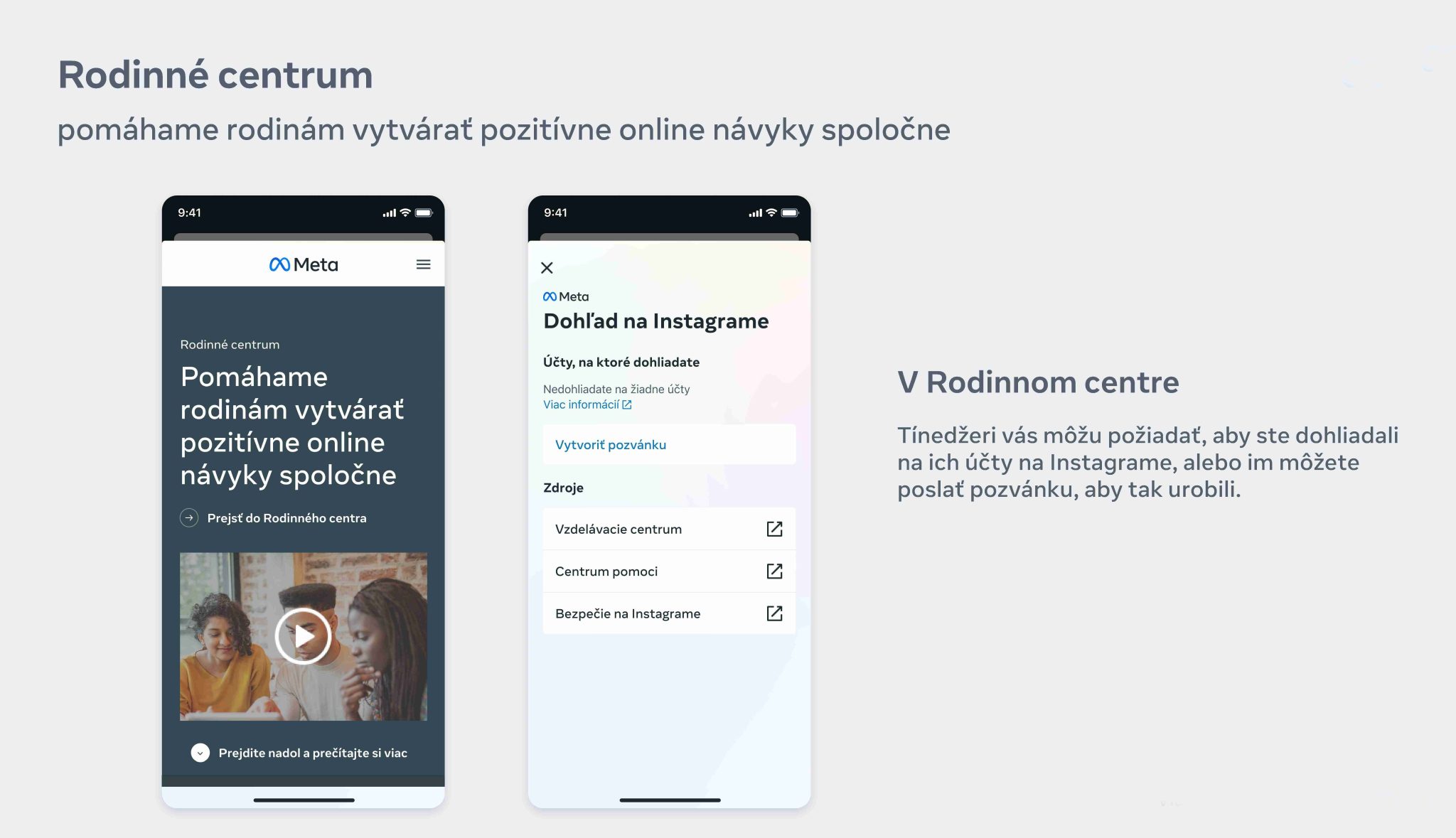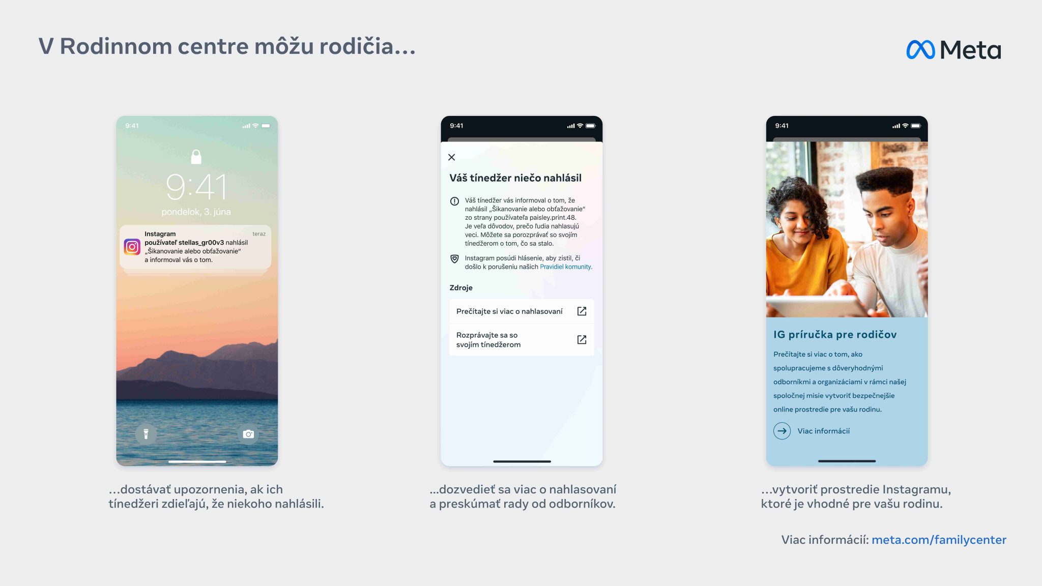 Spolu so spomínanými funkciami spoločnosť Meta otvára Rodinné centrum. Ide o vzdelávaciu stránku, ktorá rodičom pomôže lepšie sa orientovať v online svete a súčasne poskytne rady, ako správne so svojimi deťmi hovoriť o online témach.