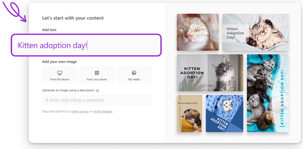 Proces tvorby ukazuje video od Microsoftu, ktoré prináša náhľad na využitie v praxi a to tak, že pri vytváraní konkrétneho materiálu zadáte kľúčové slová. Predstavte si napríklad pozvanie na pivo alebo na kávu a zadáte kľúčové slová napríklad „Posedenie pri káve z rôznych krajín“. K tomu by mala aplikácia navrhnúť farebné motívy a takisto odpovedajúce vizuály a navrhnuté obrázky, ktoré sa hodia k tejto téme.