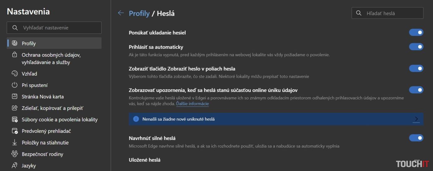 Microsoft Edge – správa hesiel. Zdroj: Roman Kadlec / TOUCHIT