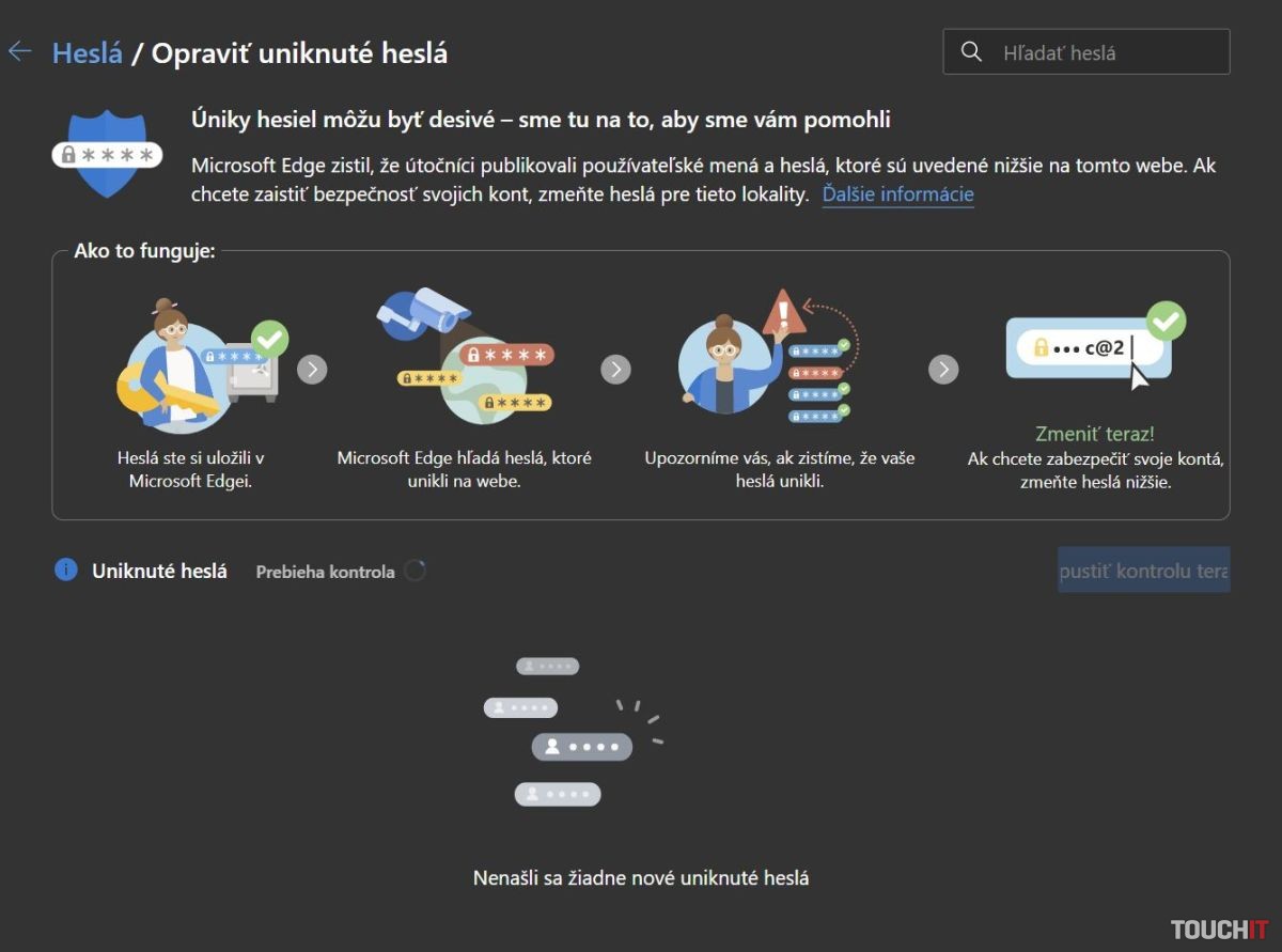Microsoft Edge – kontrola uniknutých hesiel. Zdroj: Roman Kadlec / TOUCHIT