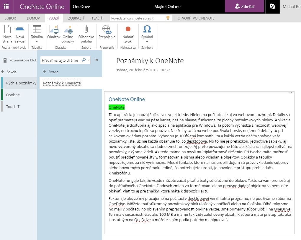 [tit_citation color=“#fa6161″ padding=“20px“ float=“left“ font-size=“1.2em“]Odporúčame používať služby kombinovane. To znamená, že vždy na vybraný účel – napríklad OneNote, zálohovanie na OneDrive atď. Na úplný prechod do on-line rozhrania to zatiaľ nie je.[/tit_citation]