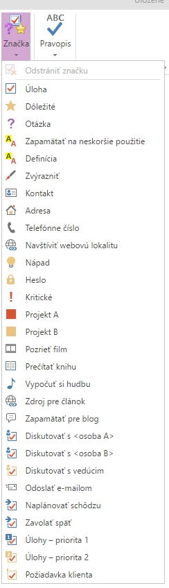 Zoznam značiek v OneNote je totožný s desktopovou aj webovou verziou