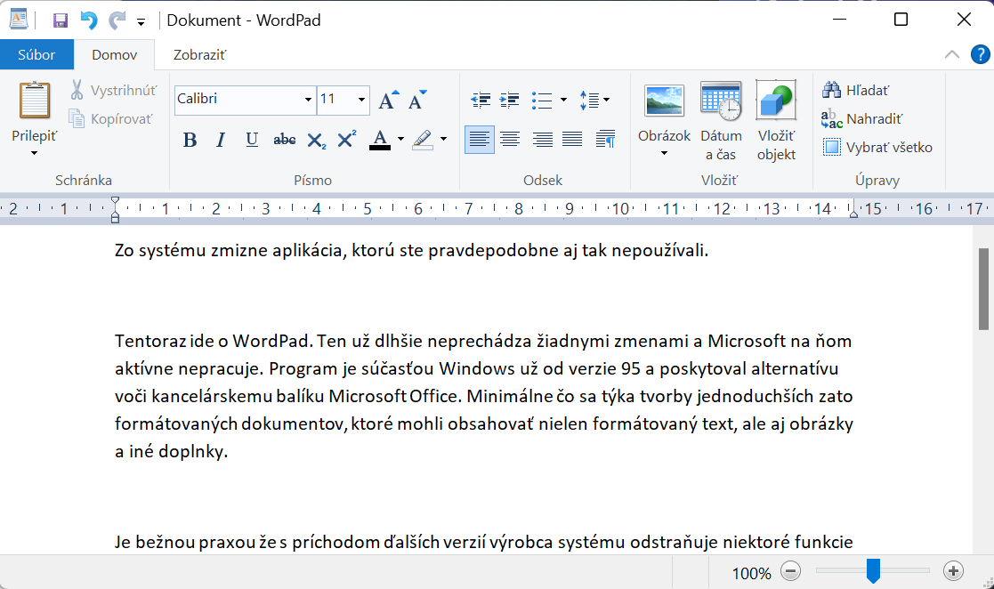 Na druhú stranu tu máte priamu podporu wordovských dokumentov, čo v prípade WordPadu nebolo k dispozícii. V ňom sa dali vytvárať dokumenty RTF, prípadne ODF (Open Document Format). Kto nechce používať platený kancelársky balík Microsoft Office, respektíve Microsoft 365 po novom pomenovaní, má možnosť využívať plnohodnotný kancelársky balík LibreOffice. Je úplne zadarmo a prichádza s plnou výbavou vrátane kresliaceho nástroja, tabuľkového editora, ale aj databázového programu.