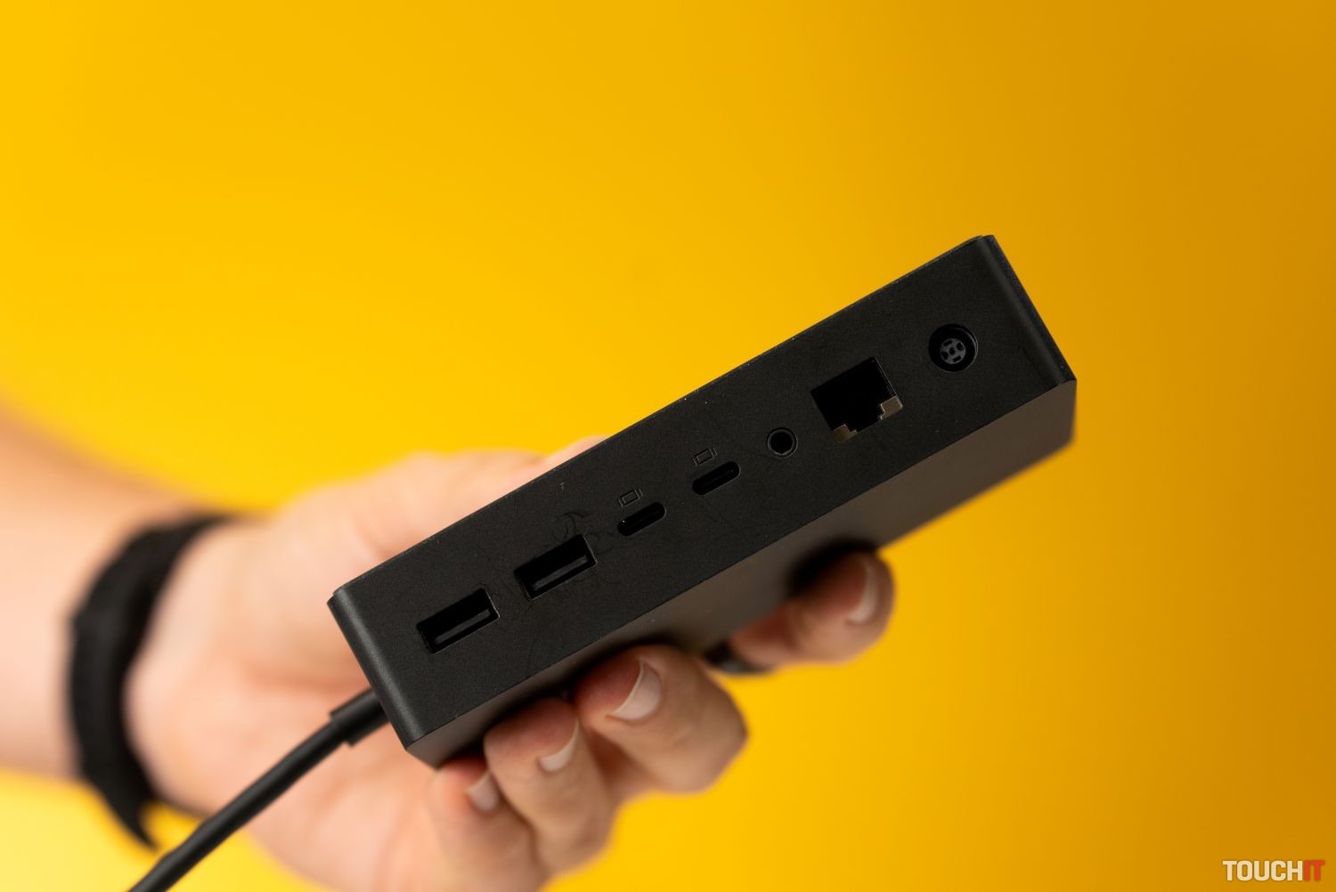Surface Dock 2 je dokovacia stanica do kancelárie alebo do domácnosti pre náročných používateľov. S tabletom sa spojí pomocou Surface portu a prináša špičkovú portovú výbavu – 4× USB-C port (dva predné, dva zadné s podporou video výstupu), dva USB-A 3.2 porty, 3,5 mm jack a 1 Gb ethernet.
