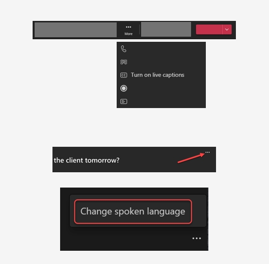Živé titulky: Vyberte ikonu „Viac“ na paneli úloh (označené tromi bodkami) a stlačte tlačidlo „Zapnúť živé titulky„. Kliknutím na tri bodky na table Živé titulky, ktoré sa zobrazili v dolnej časti obrazovky, vyberte jazyk. Vyberte položku Slovenčina. Na obrazovke uvidíte titulky vo vami zvolenom jazyku. Titulky môžete vypnúť aj podľa rovnakých krokov.