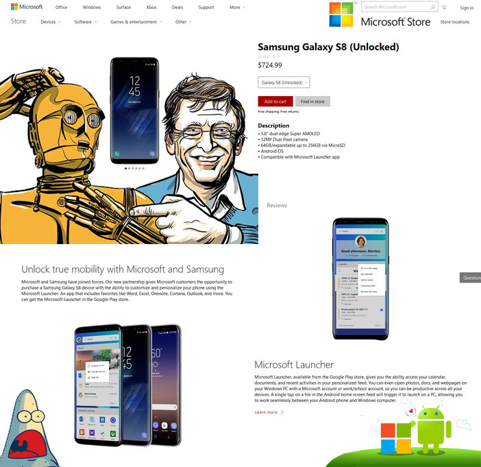 Pomerne zaujímavý zlom nastal v súvislosti s aktuálnom generáciou Galaxy S8, ktorý Microsoft začal v USA predávať vo svojich obchodoch. Propaguje a predáva ho pritom nielen v kamenných obchodoch, ale takisto aj v e-shope. Takéto niečo bolo ešte nedávno nepredstaviteľné.