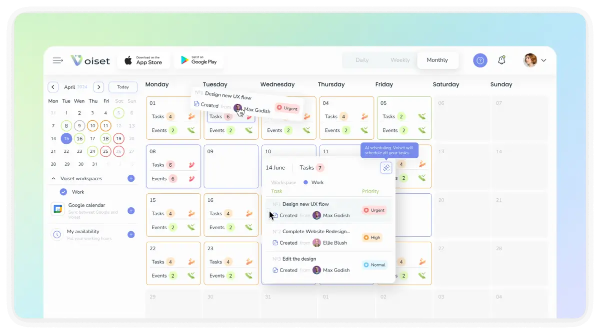 voiset.io je pokročilý AI nastroj na správu úloh, ktorý okamžite premieňa hlasové pokyny na podrobný akčný plán a umožňuje vytvárať úlohy jediným kliknutím. Jeho hlavným cieľom je odbremeniť používateľa od manuálneho plánovania a zveriť organizáciu procesov inteligentnému systému, ktorý pracuje s presnosťou a rýchlosťou spoľahlivého osobného asistenta.