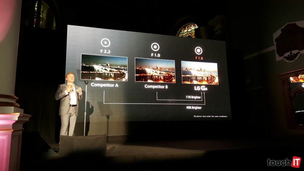 17:27 – LG ukazuje porovnanie fotiek s vybranými (nemenovanými) konkurentmi. Zároveň predstavuje tzv. Colour Spectrum Senzor. LG G4 je prvý smartfón s touto funkciou. Dokáže rozpoznať objekt, aj ideálne svetelné podmienky.